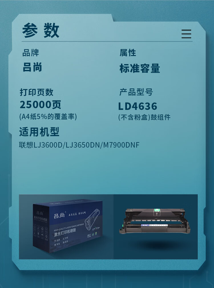 吕尚 LD4636 25000页 适用联想LJ3600D/LJ3650DN/M7900DNF 硒鼓 (计价单位:只) 黑色 黑色
