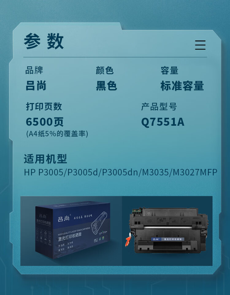 吕尚 Q7551A 6500页 适用HP P3005/P3005d/P3005dn/M3035/M3027MFP 硒鼓 (计价单位:只) 黑色