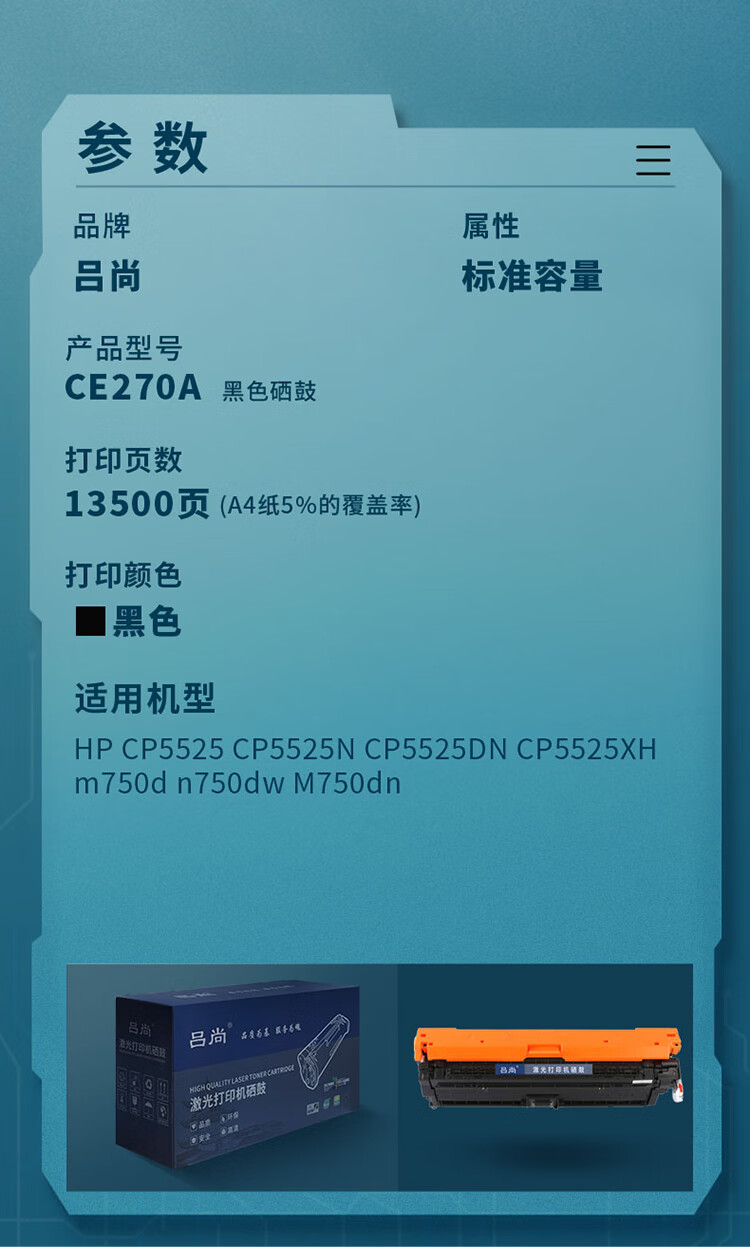 吕尚 CE270A 13500页 适用惠普CP5525n CP5525dn CP5525xh 硒鼓 (计价单位:只) 黑色 黑色