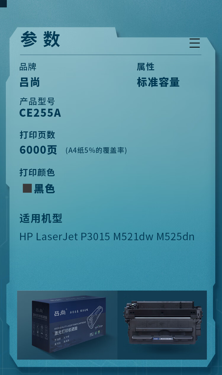 吕尚 CE255A 6000页 适用HP LaserJet P3015 M521dw M525dn 硒鼓 (计价单位:只) 黑色 黑色