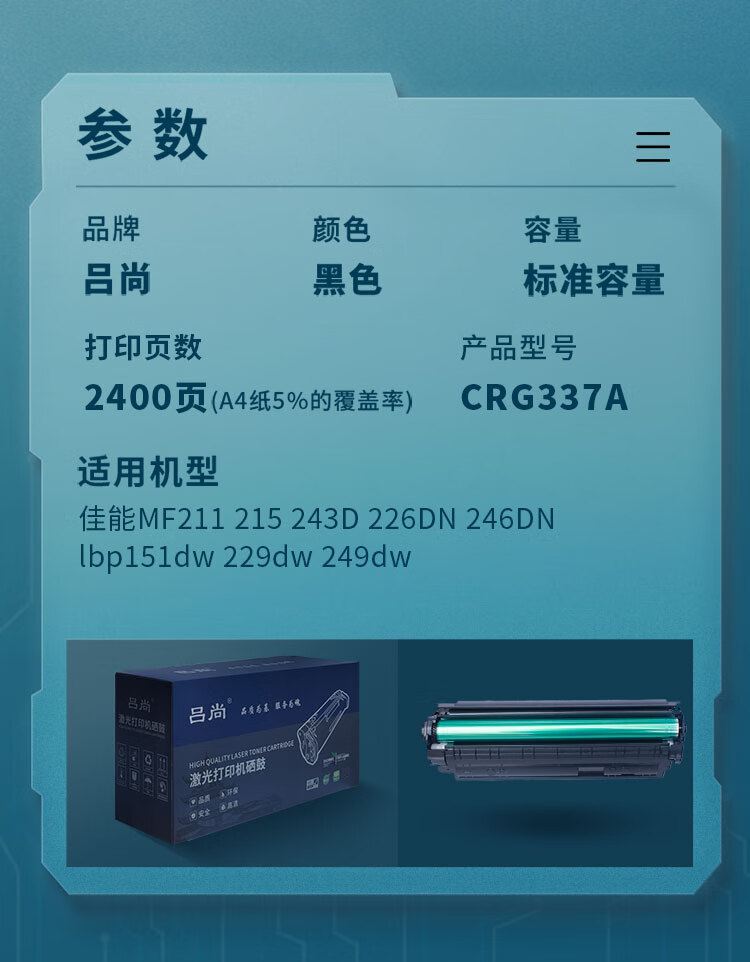 吕尚 CRG337A 2400页 适用佳能MF211 215 243D 226DN 246DN lbp151dw 229dw 249dw 硒鼓 (计价单位:只) 黑色