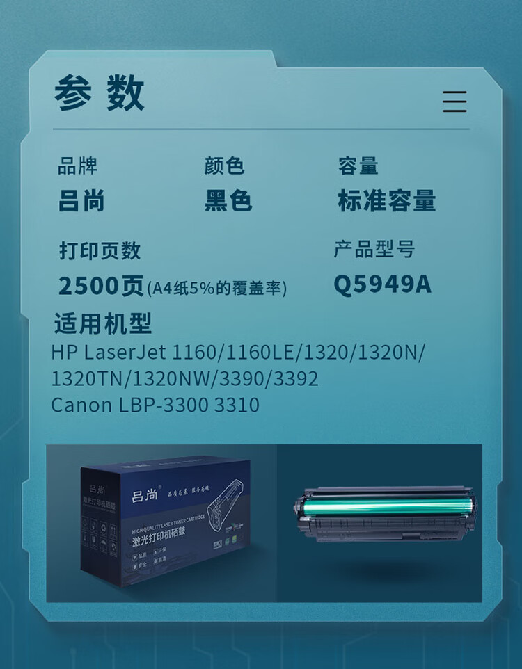 吕尚 Q5949A 2500页 适用HP 1160/1320/3390/3392 Canon LBP-3300 3310 硒鼓 (计价单位:只) 黑色