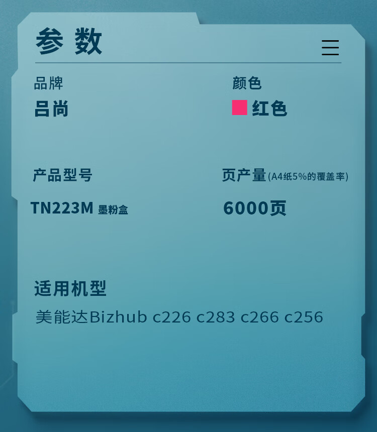 吕尚 TN223M 6000页 适用美能达Bizhub c226 c283 c266 c256 粉盒 (计价单位:只) 红色