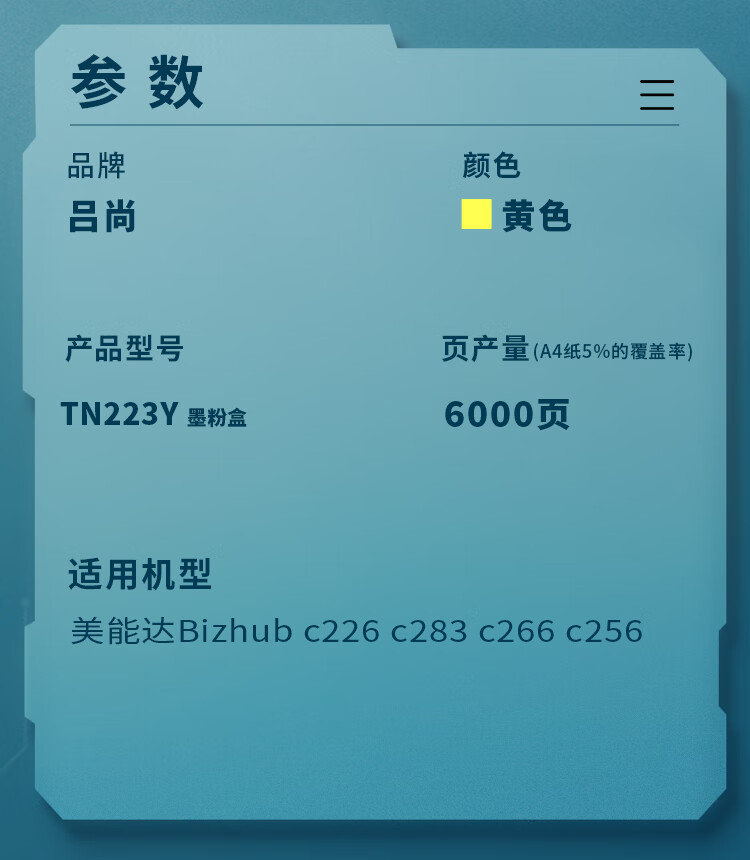 吕尚 TN223Y 6000页 适用美能达Bizhub c226 c283 c266 c256 粉盒 (计价单位:只) 黄色
