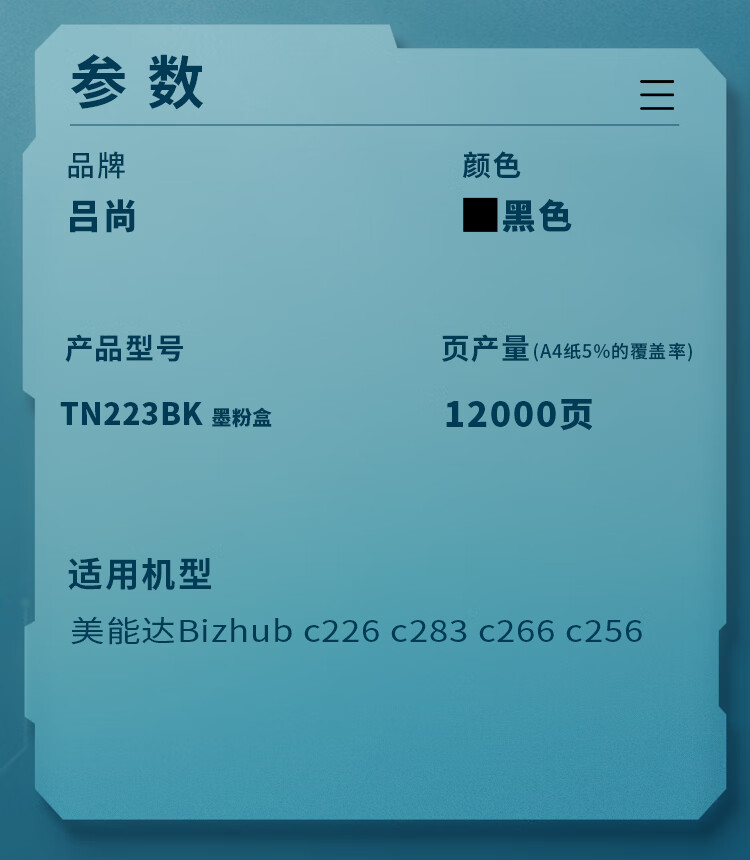 吕尚 TN223BK 12000页 适用美能达Bizhub c226 c283 c266 c256 粉盒 (计价单位:只) 黑色