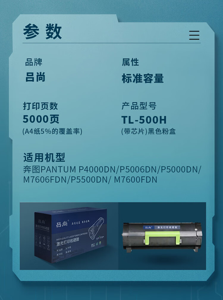 吕尚 TL-500H 5000页 适用奔图P4000DN P5006DN M7600FDN 粉盒 (计价单位:只) 黑色