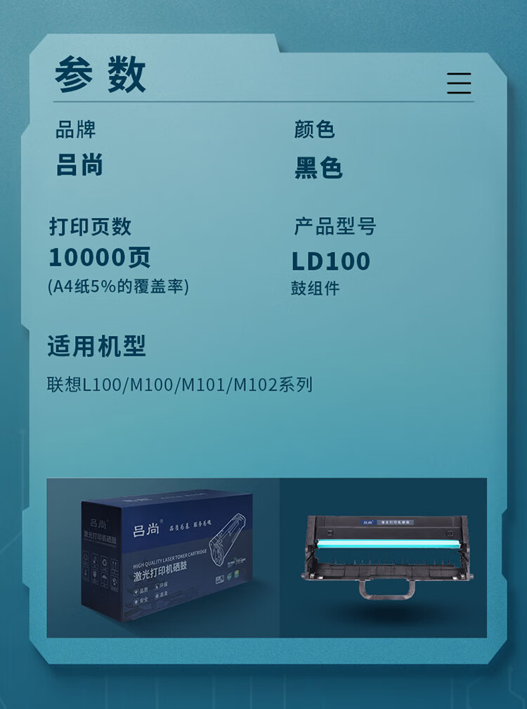吕尚 LD100 10000页 适用联想L100/M100/M101/M102 硒鼓 1.00 只/个 (计价单位:个) 黑色