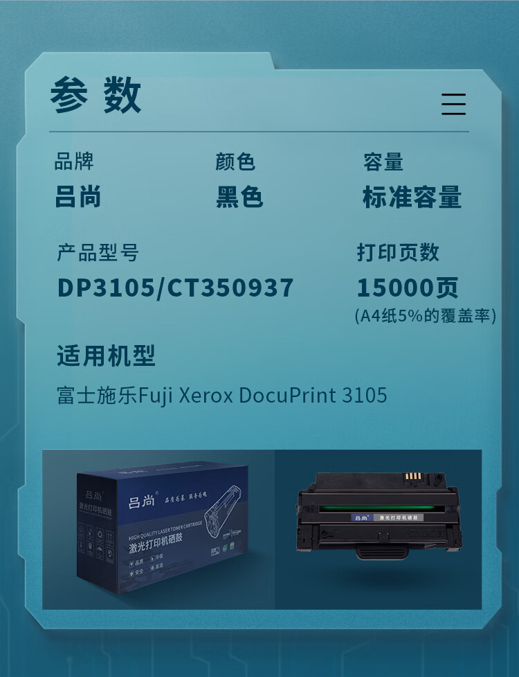 吕尚 DP3105 CT350937 适用施乐Xerox DocuPrint 3105 约15000页 硒鼓 1.00 只/个 (计价单位:个) 黑色 黑色