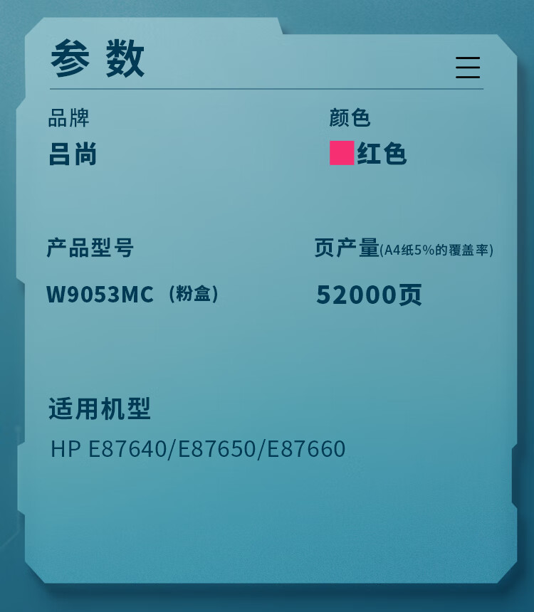 吕尚 W9053MC墨粉盒 52000页 适用HP E87640/E87650/E87660 硒鼓 1.00 只/个 (计价单位:个) 红色 红色