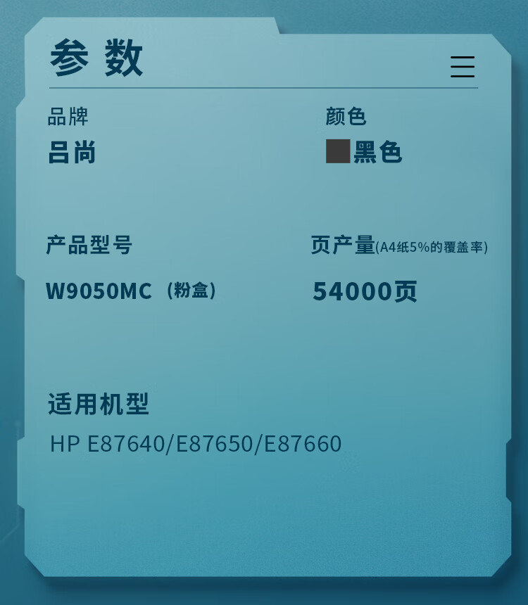 吕尚 W9050MC墨粉盒 54000页 适用HP E87640/E87650/E87660 硒鼓 1.00 只/个 (计价单位:个) 黑色 黑色