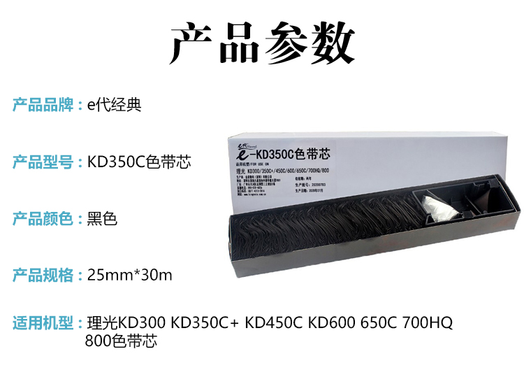 e代经典 KD350C 适用理光KD300 KD350C+ KD450C KD600 650C 700HQ 色带 1.00 盒/支 (计价单位:支) 黑色