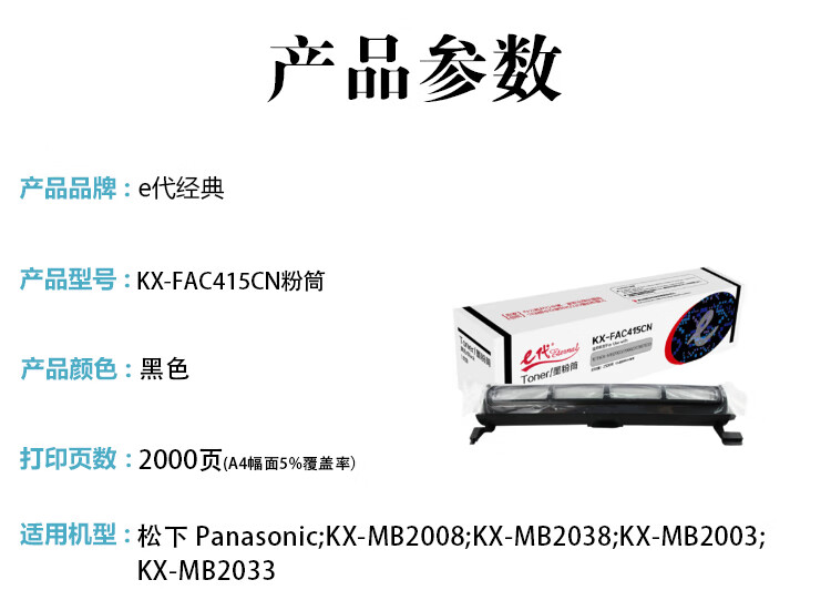 e代经典 KX-FAC415CN 2000页 适用松下KX-MB2003 粉筒 1.00 只/支 (计价单位:支) 黑色