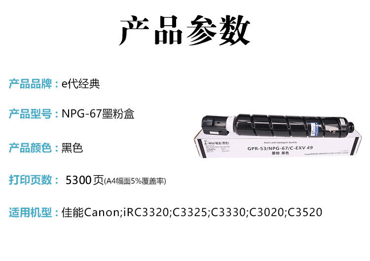 e代经典 NPG-67 19000页 黑 适用佳能iRC3320 C3325 C3330 粉盒 1.00 只/支 (计价单位:支) 黑色