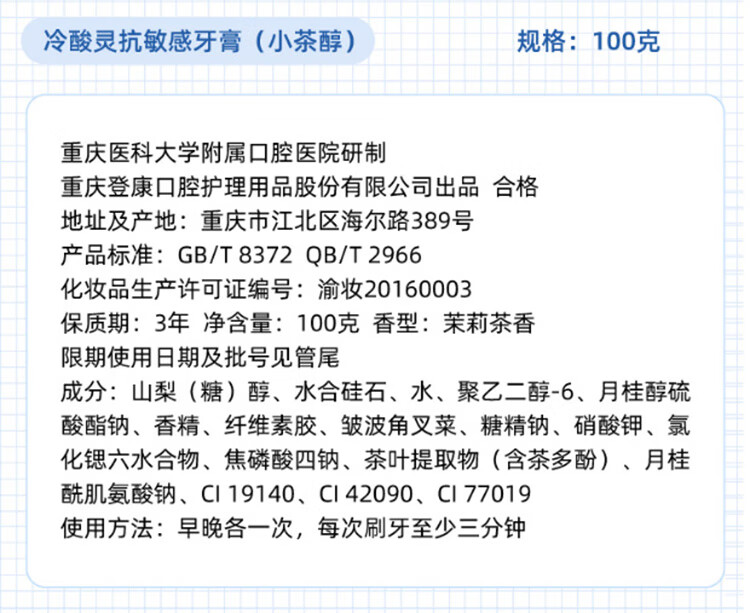 冷酸灵小系列抗敏感牙膏(小茶醇)100g 1支