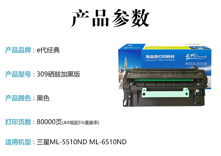 e代经典 R309 加黑版 适用三星 ML-5510ND 硒鼓 1.00 只/支 (计价单位:支) 黑色
