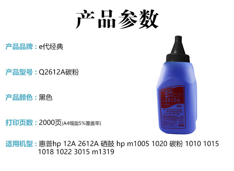 e代经典 e-Q2612A 瓶装100g/瓶 适用惠普hp 12A 2612A 碳粉 1.00 瓶/支 (计价单位:支) 黑色