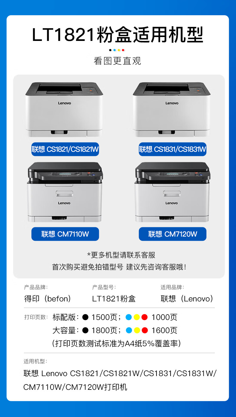 得印(befon) BF-LT1821 蓝色1000页 适用于联想CS1831 墨粉盒 1.00 只/支 (计价单位:支) 蓝色