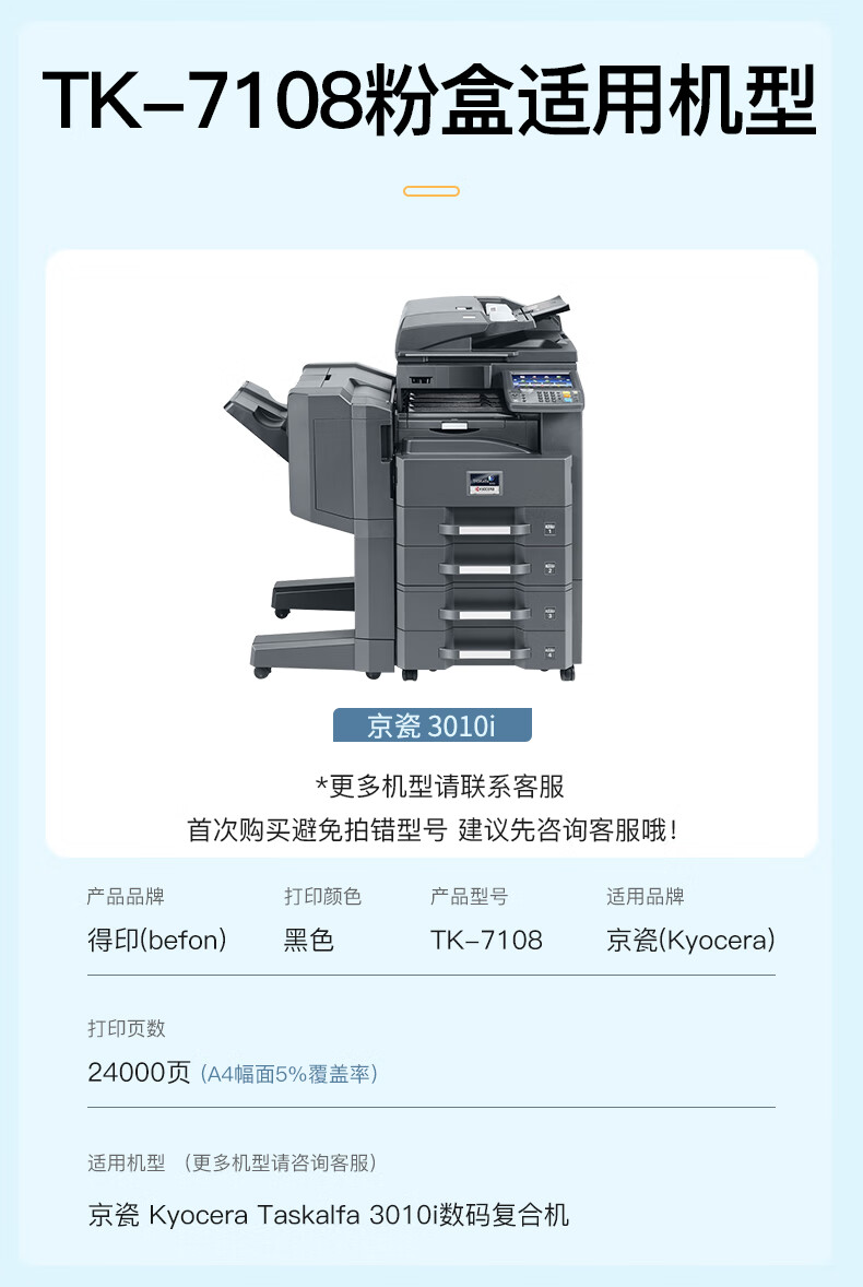 得印(befon) TK-7108 24000页 适用京瓷TASKalfa 3010i复印机 粉盒 1.00 只/支 (计价单位:支) 黑色