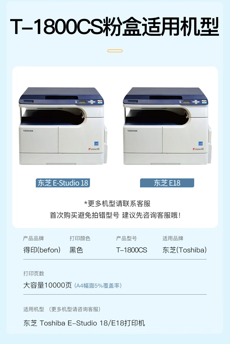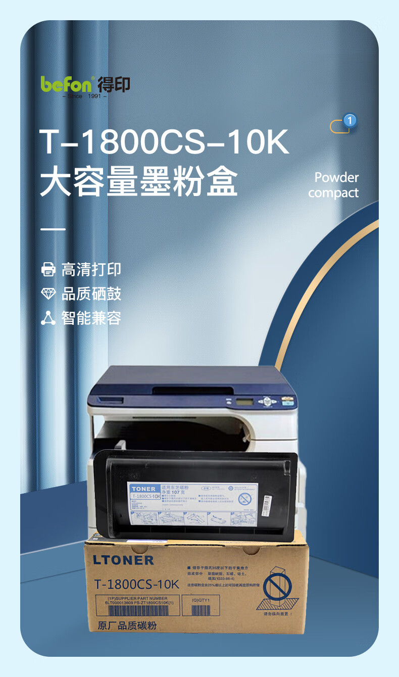 得印(befon) T-1800CS-10K 10000页 适用东芝e-STUDIO18 粉盒 1.00 只/支 (计价单位:支) 黑色