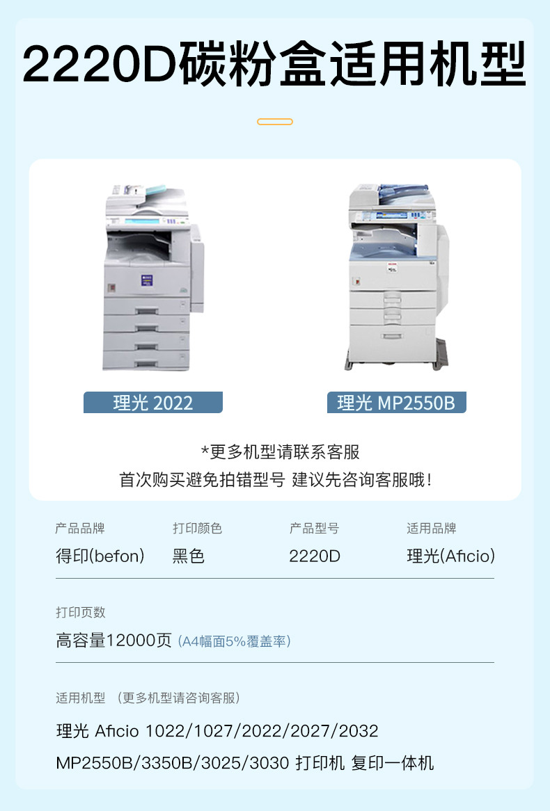 得印(befon) BF-2220D高容量 12000页 适用理光Aficio 墨粉盒 1.00 只/支 (计价单位:支) 黑色