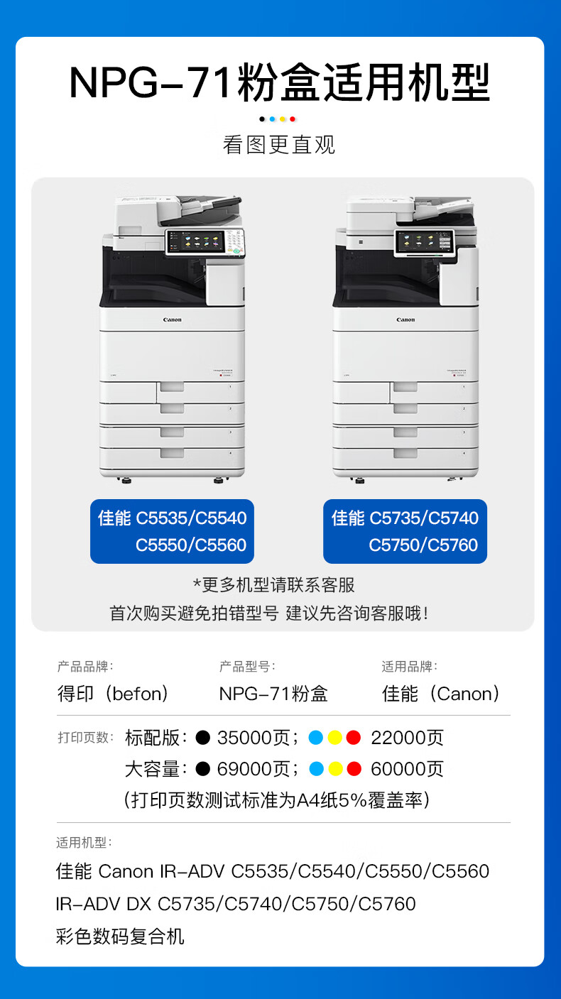 得印(befon) NPG-71蓝色 22000页 适用佳能iR-ADVC5535 粉盒 (计价单位:只) 蓝色