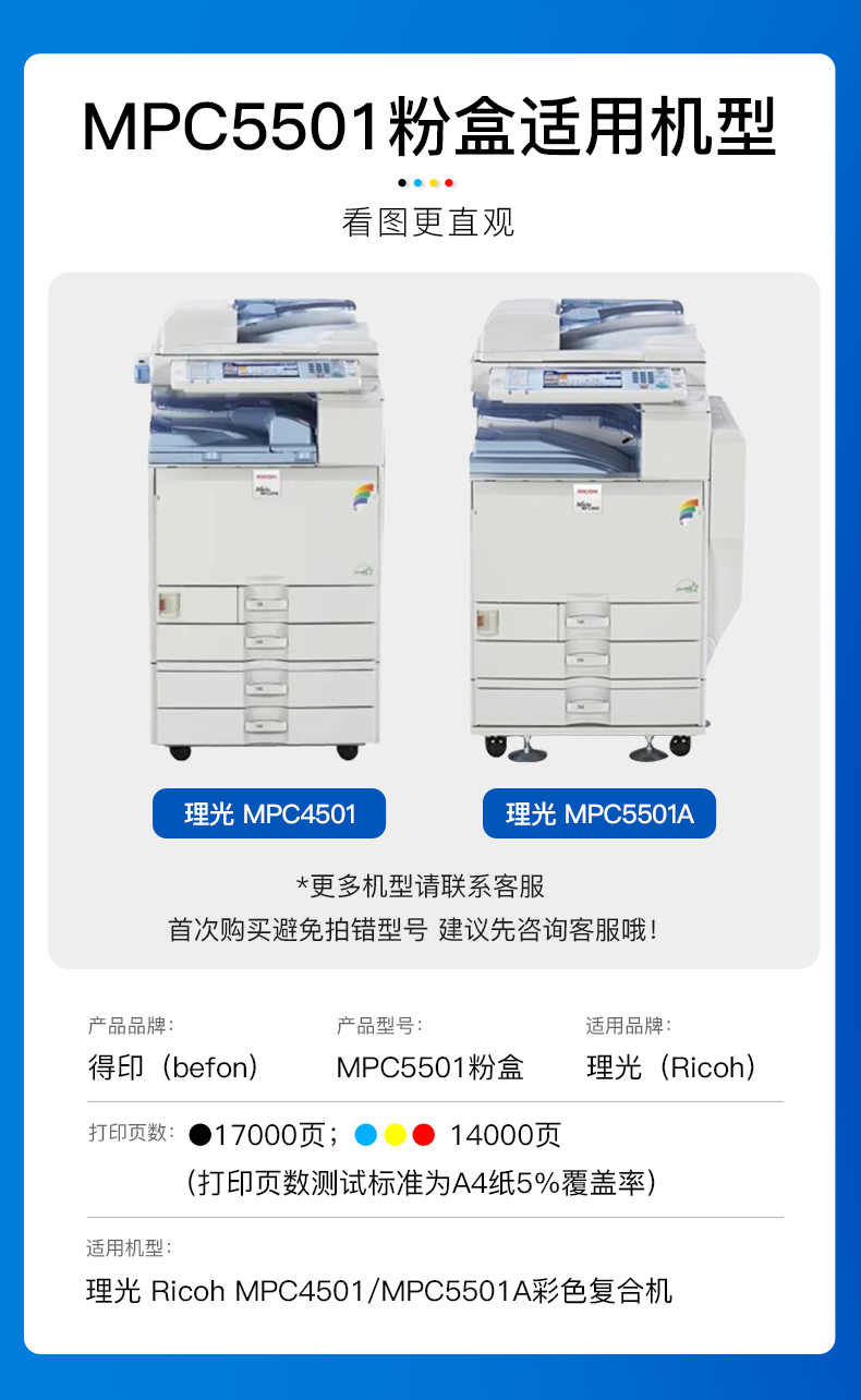 得印(befon) MPC5501 黑色17000页彩色14000页 适用理光MPC4501 四色套装 粉盒 4.00 只/组 (计价单位:组) 四色