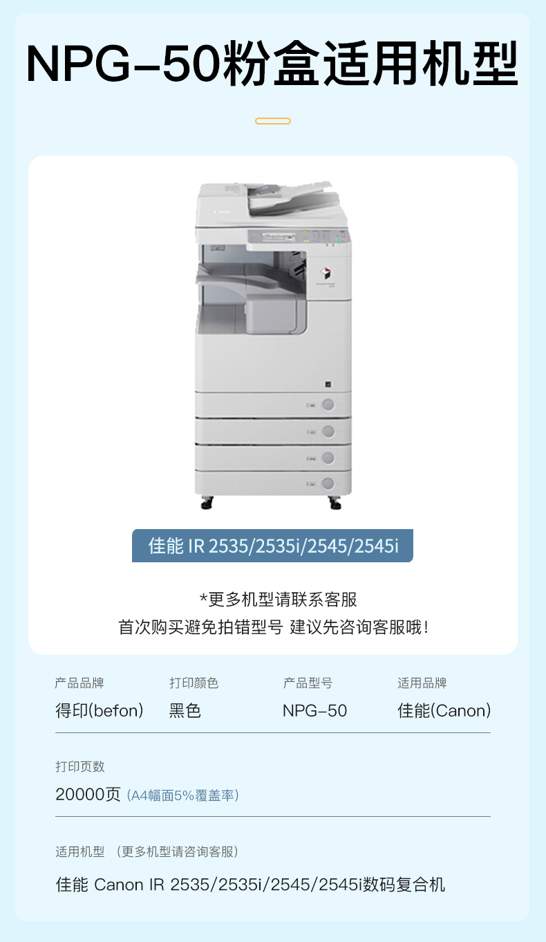 得印(befon) NPG50 20000页 适用佳能IRR2520i/2530i复印机 粉盒 1.00 只/支 (计价单位:支) 黑色