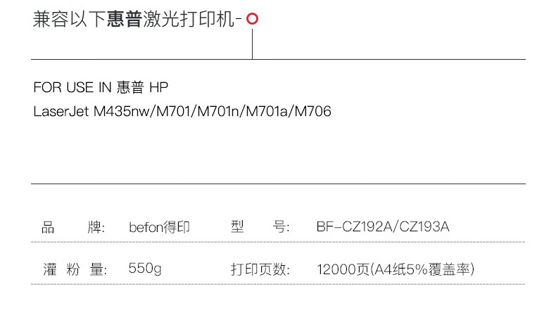 得印(befon) PLUS BF-CZ192A 12000页 适用HP LaserJet Pro M435nw 硒鼓 1.00 只/支 (计价单位:支) 黑色
