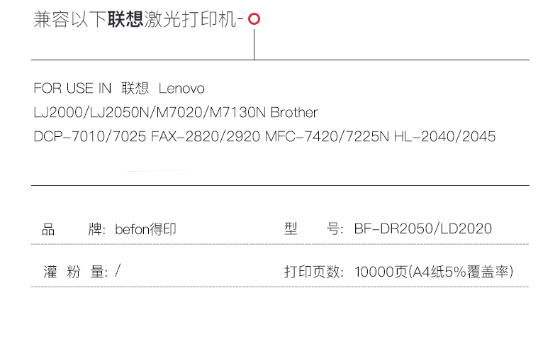 得印(befon) PLUS BF-DR2050 LD2020 10000页 适用联想 LJ2000 硒鼓 1.00 只/支 (计价单位:支) 黑色