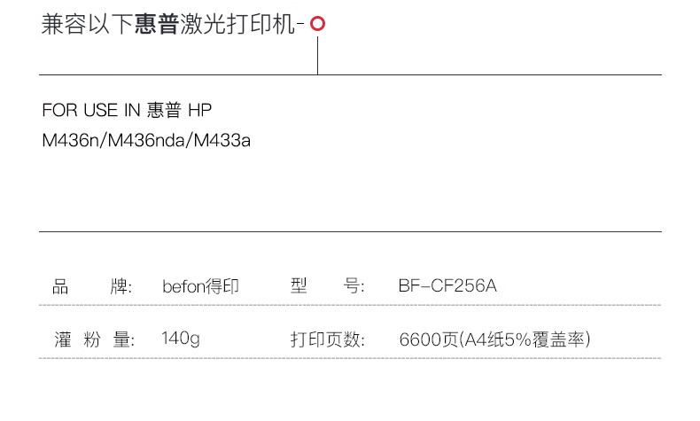 得印(befon) PLUS BF-CF256A 大容量 6600页 适用惠普M436n 硒鼓 1.00 只/支 (计价单位:支) 黑色