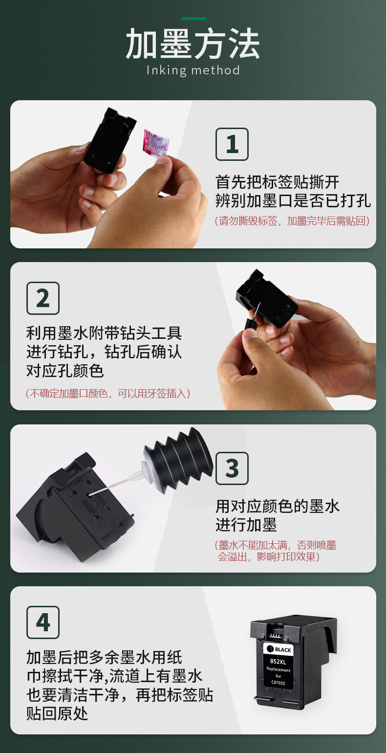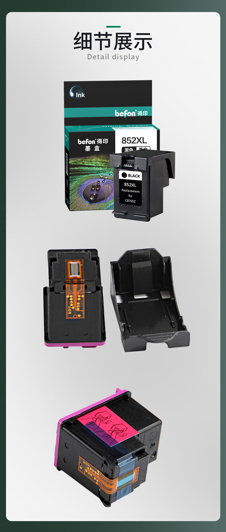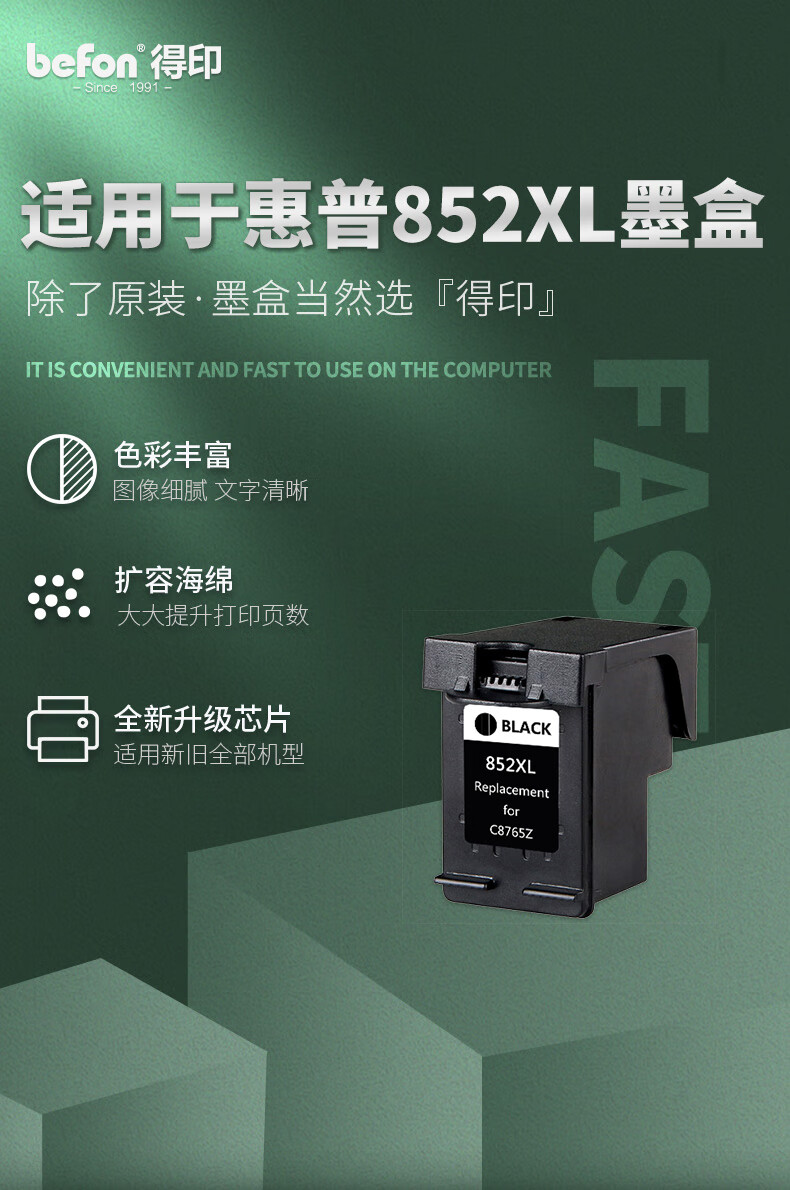 得印(befon) H-852 C8765ZZ 大容量 打印量600页 适用HP2358/6848/6548/5740/5748/6520/6540/9808/9868 墨盒 (计价单位:盒) 黑色