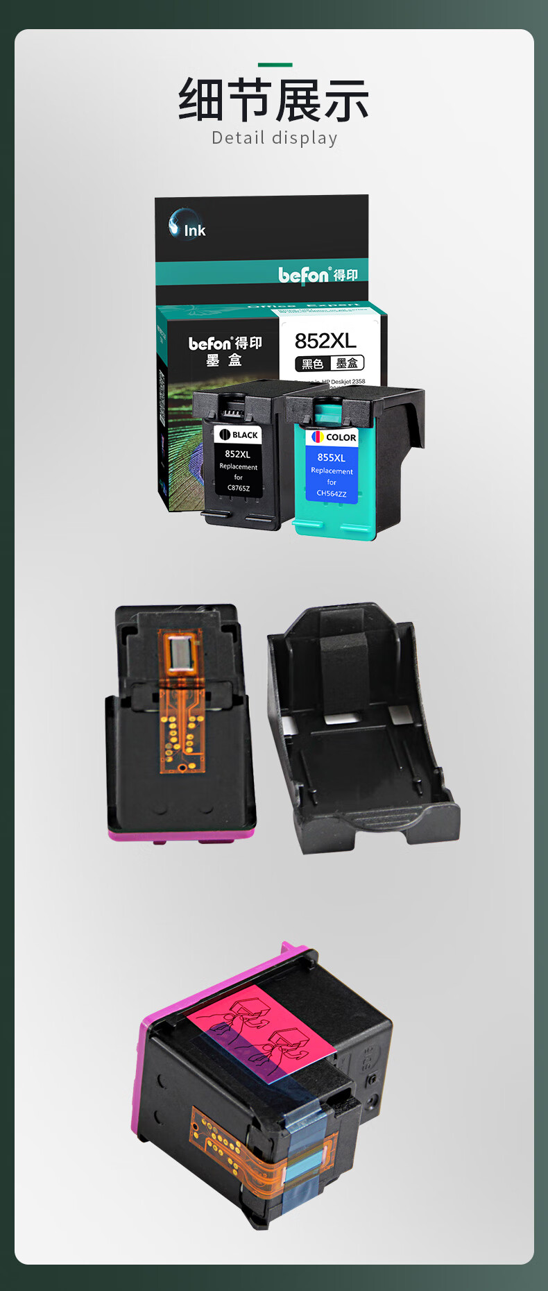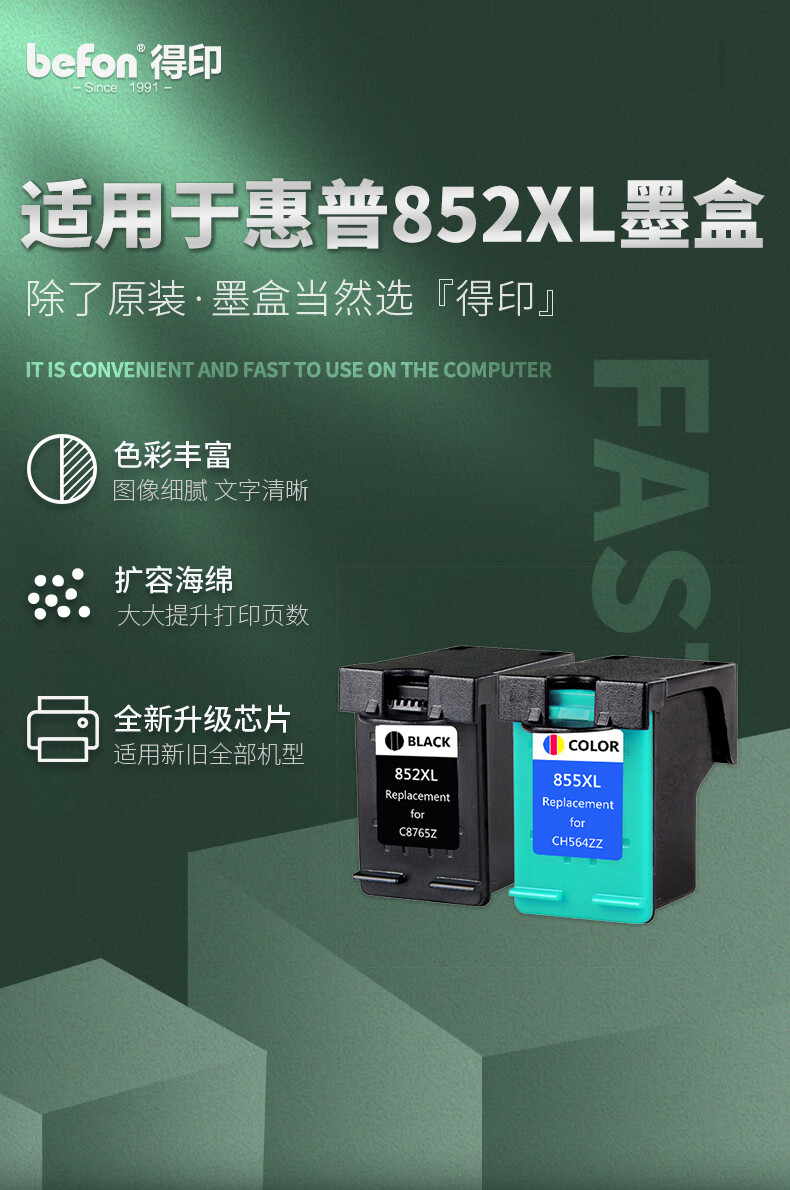 得印(befon) H-852/H-855大容量 黑彩套装 打印量黑色900页彩色600页 适用HP2358/6848/6548/5740/5748/6520/6540 墨盒 (计价单位:盒) 黑彩