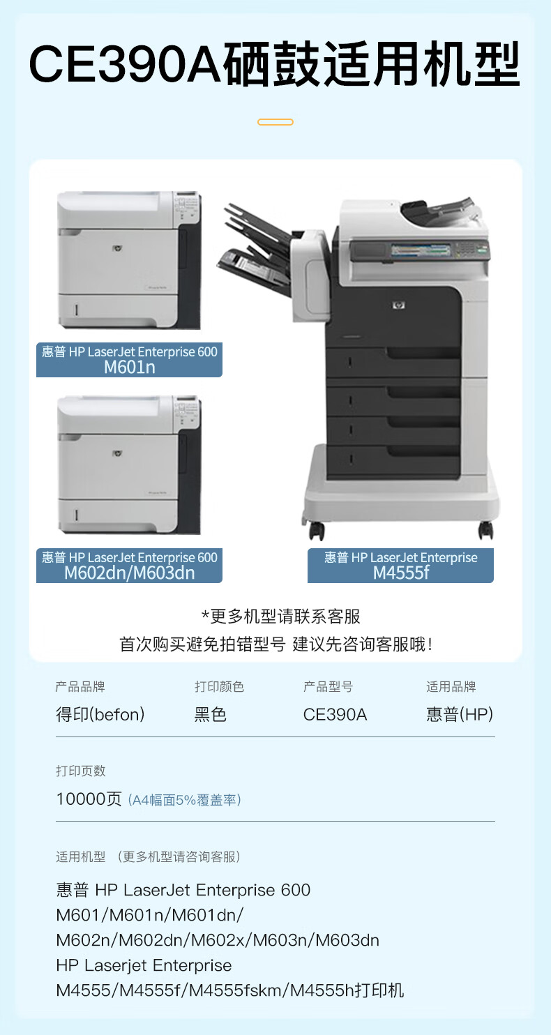 得印(befon) CE390A 10000页 适用HP 600 M601n 硒鼓 1.00 只/支 (计价单位:支) 黑色