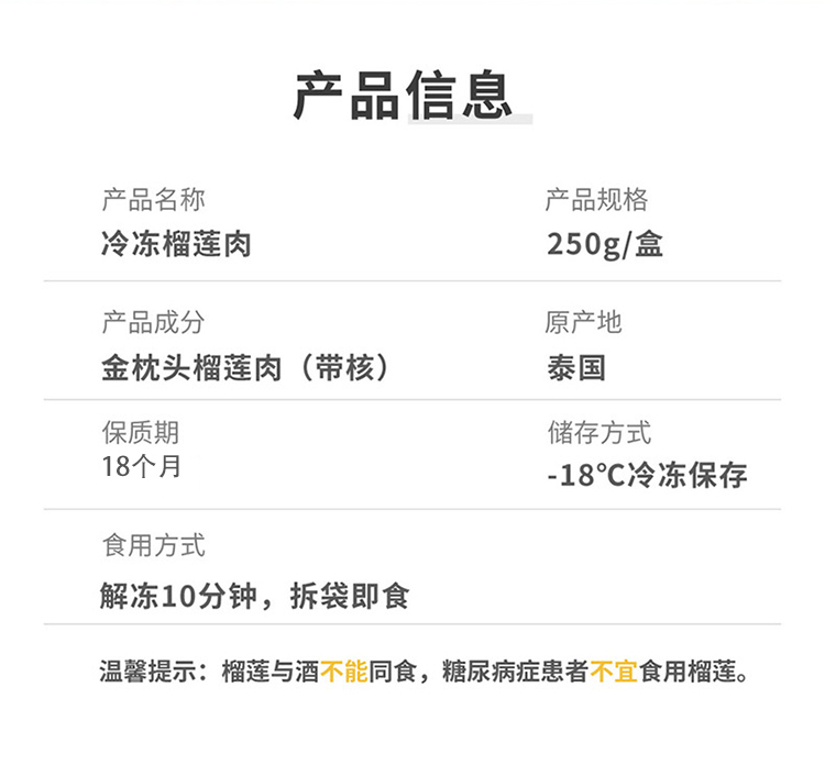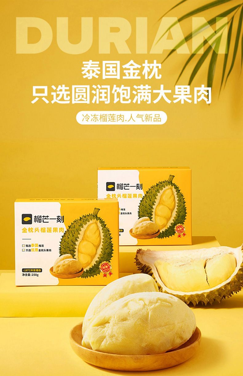 榴芒一刻泰国新鲜冻肉榴莲250g*2盒 无色