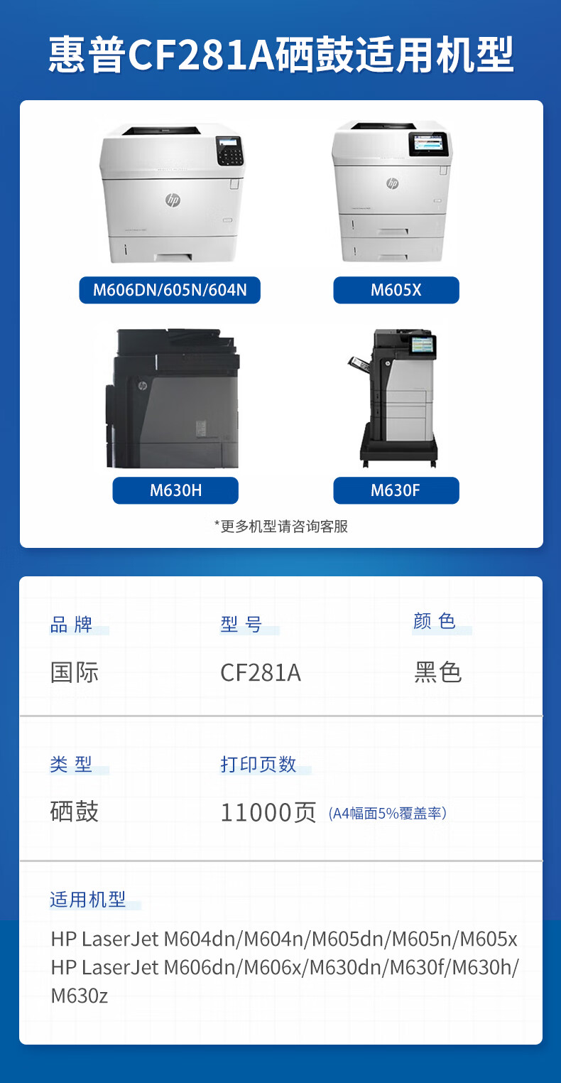 国际 CF281A 打印量约10000页 适用惠普HPM604M605zM630dnM606hp81A 硒鼓 1.00 只/支 (计价单位:支) 黑色