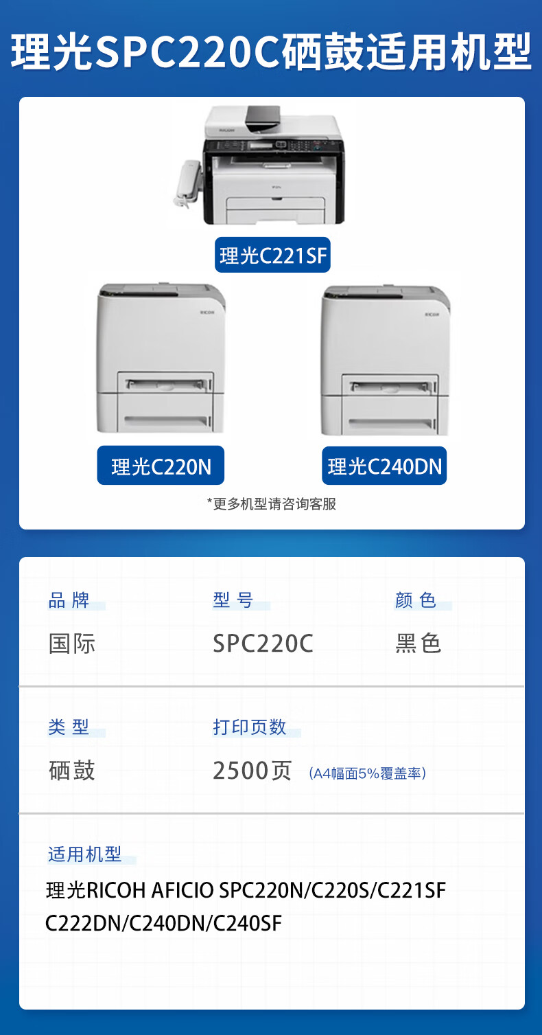 国际 SPC220BK 打印量约2000页 适用理光C220N/C220S/221/221SF/221S/C221SF/C222DN/C240DN/RC220 硒鼓 (计价单位:只) 黑色