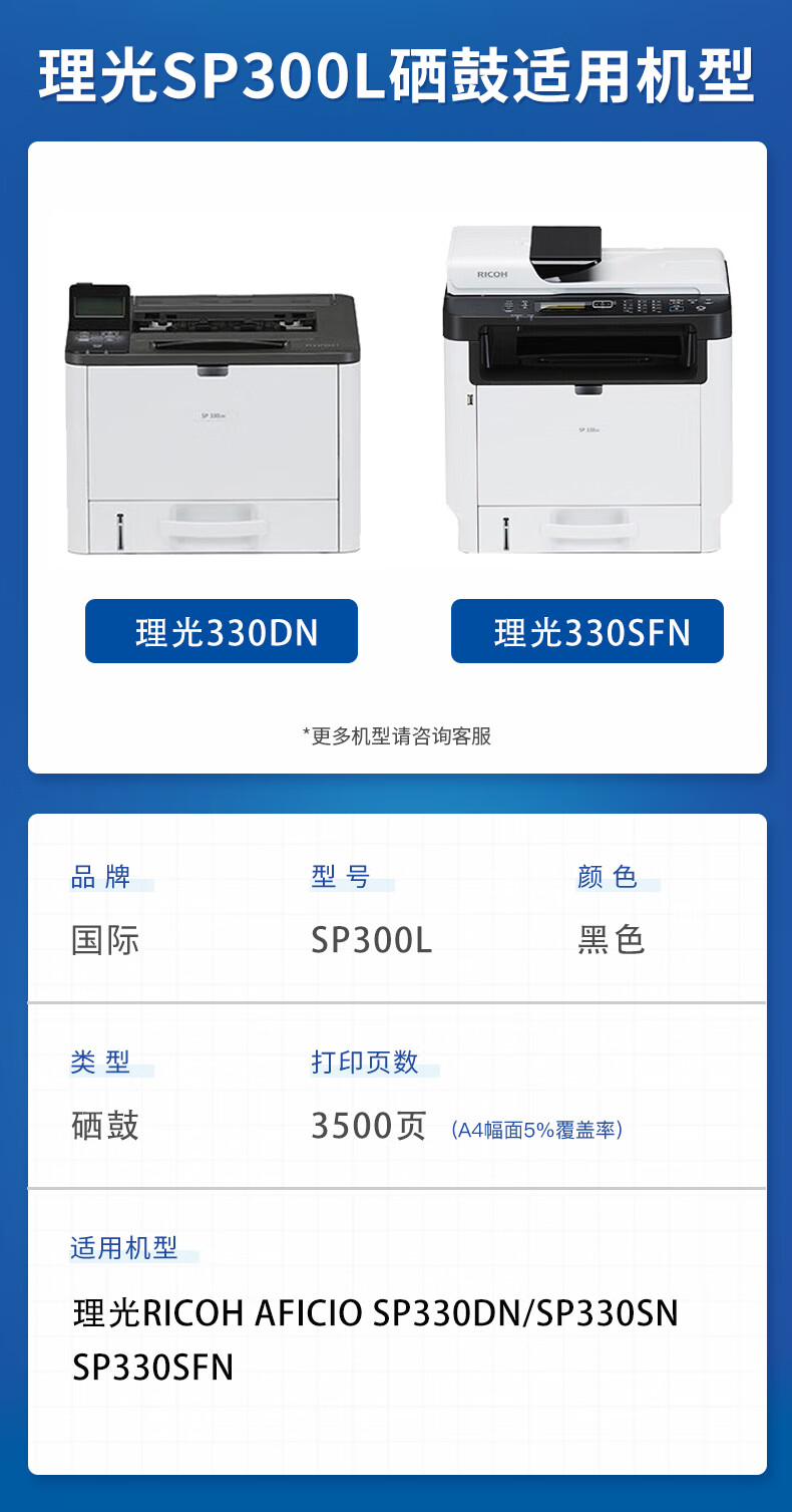 国际 SP330 打印量约3500页 易加粉适用理光SP330DN/330SN/330SFN 硒鼓 1.00 只/支 (计价单位:支) 黑色