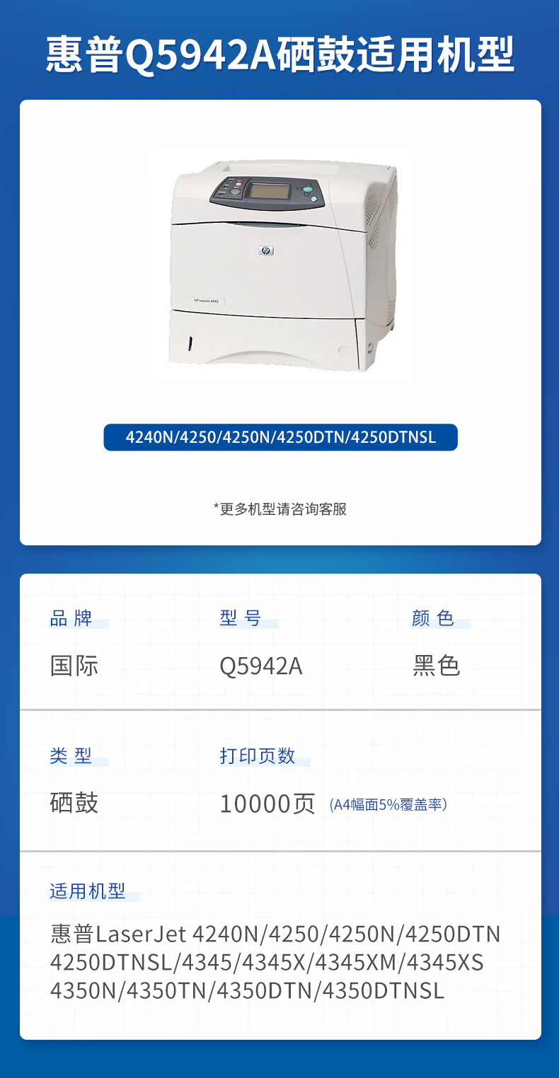国际 Q5942A 打印量约10000页 适用于HPLaserJet4250/4350 硒鼓 1.00 只/支 (计价单位:支) 黑色