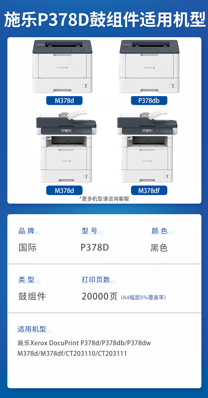 国际 M378d 打印量约30000页 适用富士施乐DocuPrintP378dw/P378db/M378d/M378df 硒鼓 1.00 只/支 (计价单位:支) 黑色