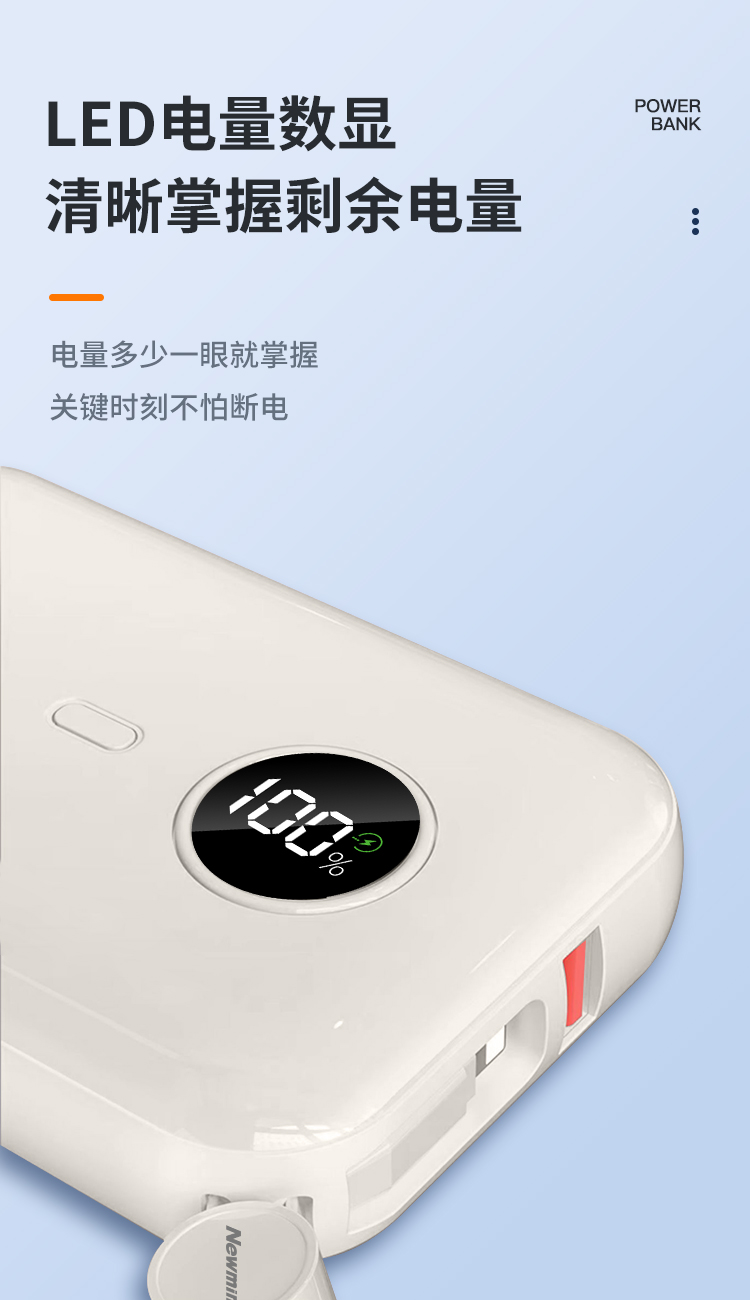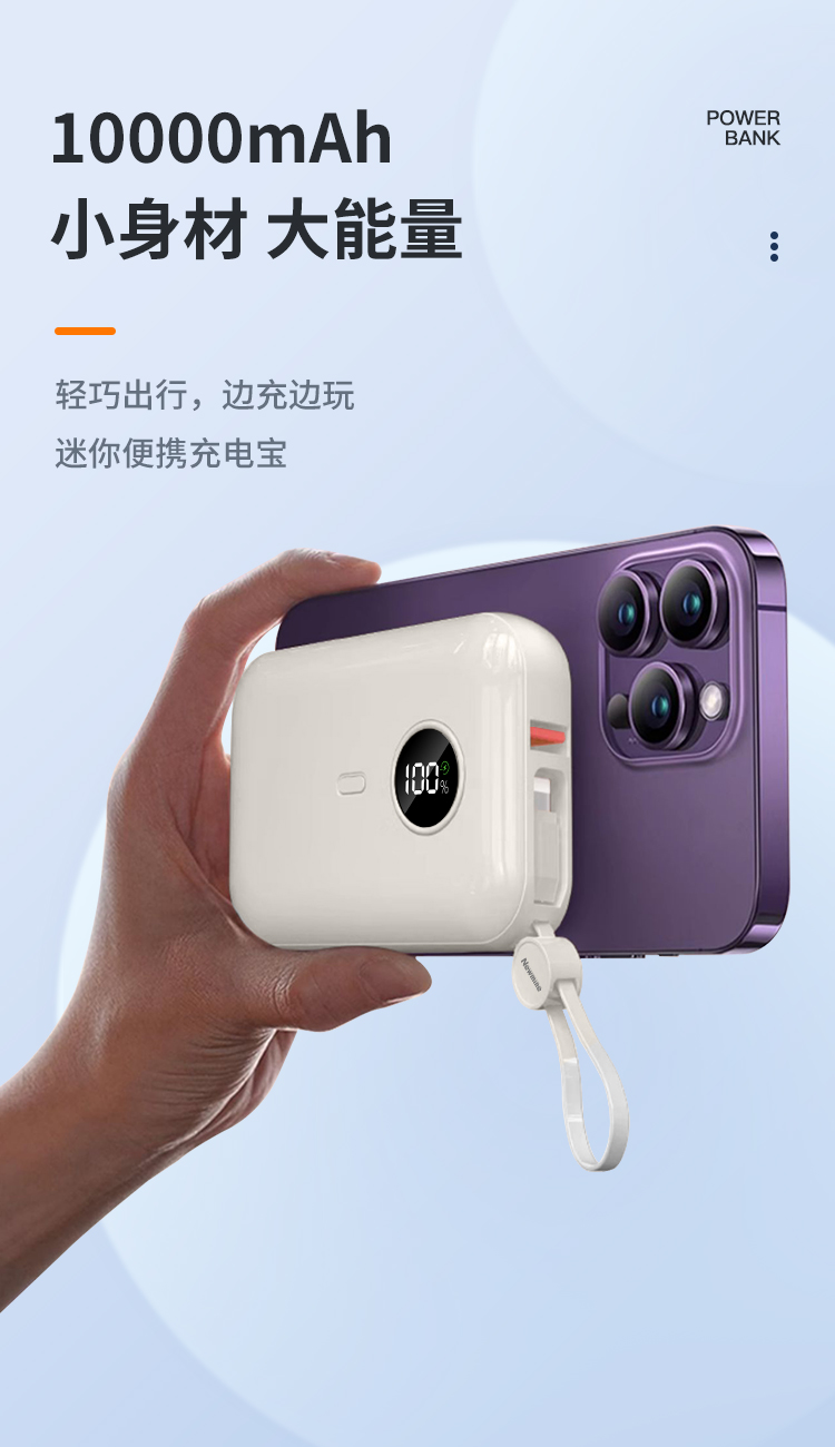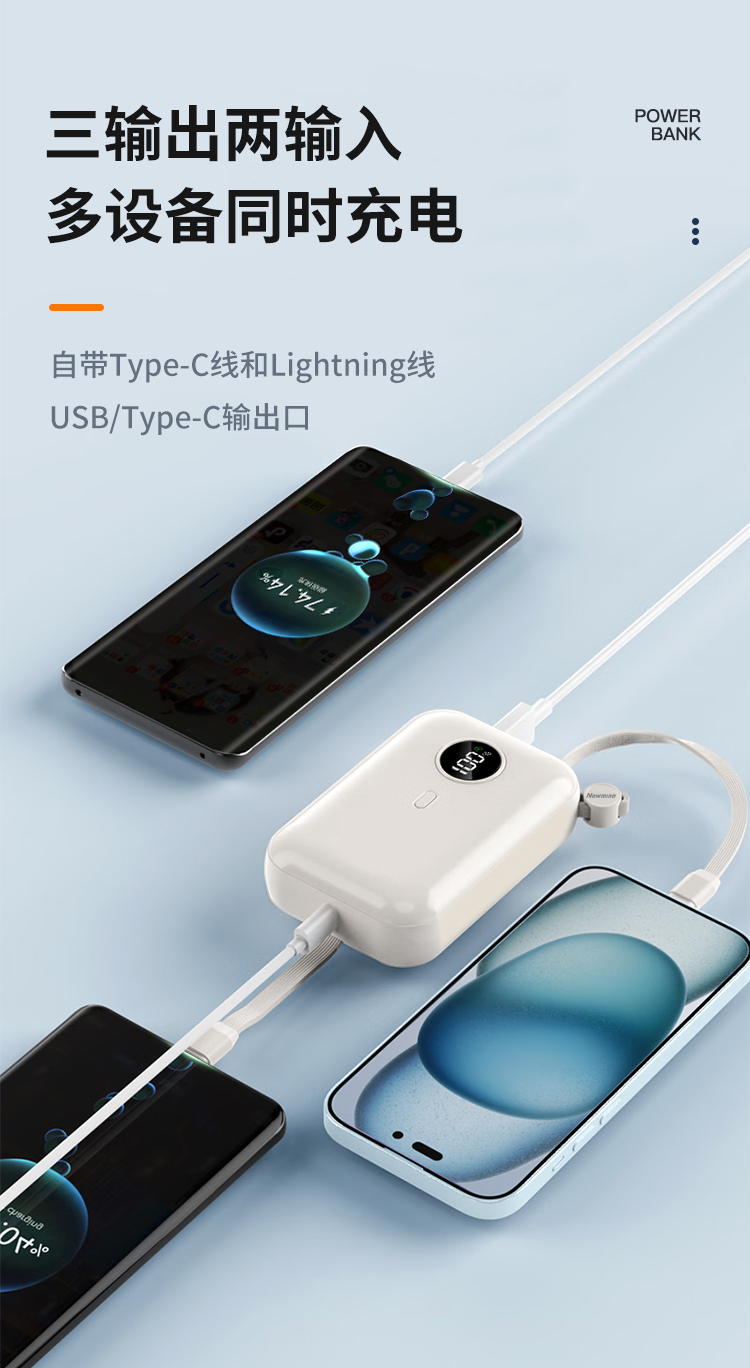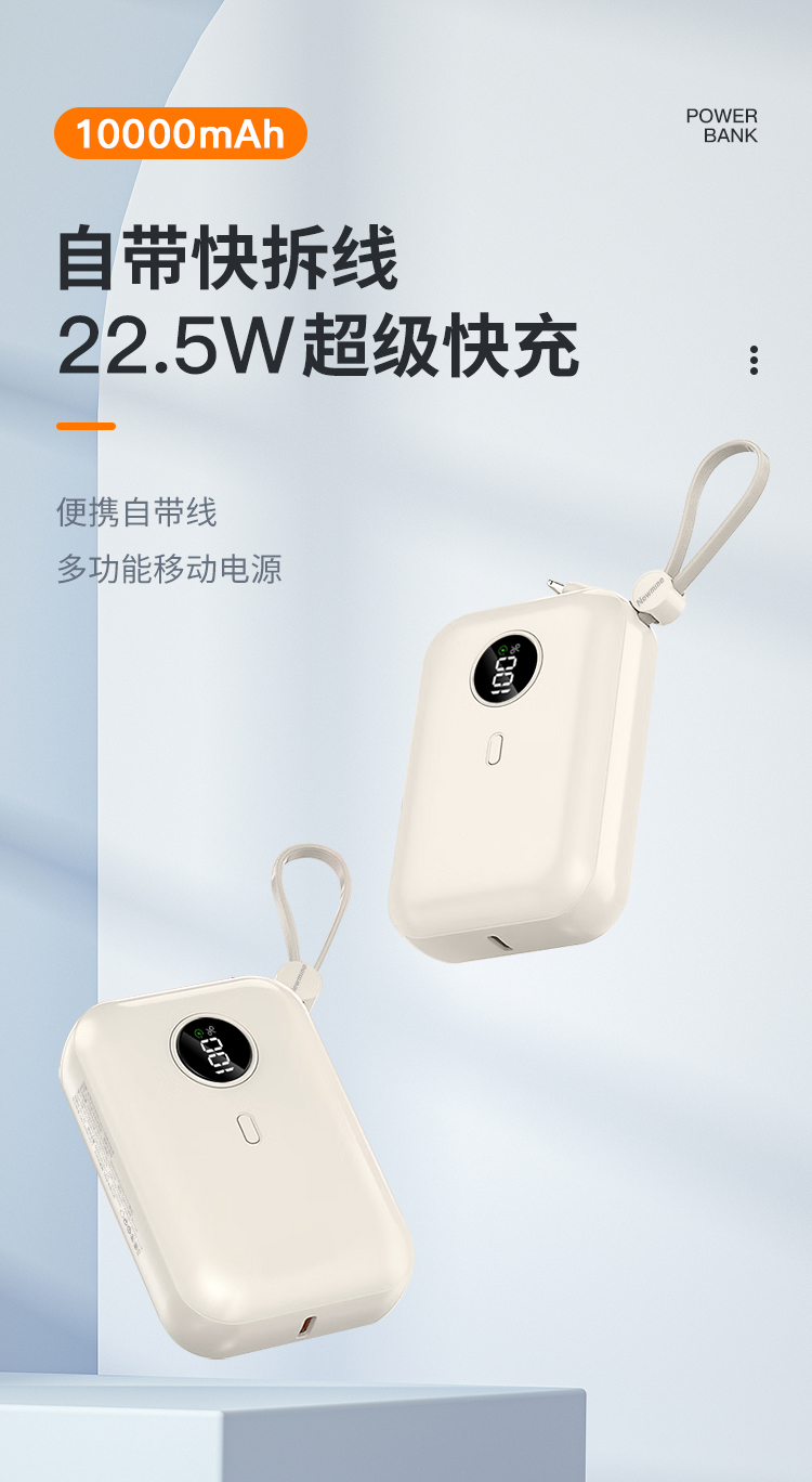纽曼自带线22.5W超级快充移动电源20W双向快充10000毫安充电宝三输出二输入AL07双向快充个 奶茶色