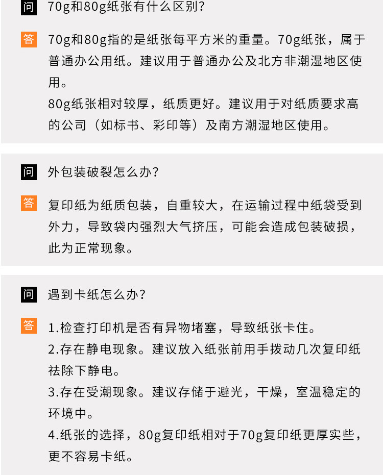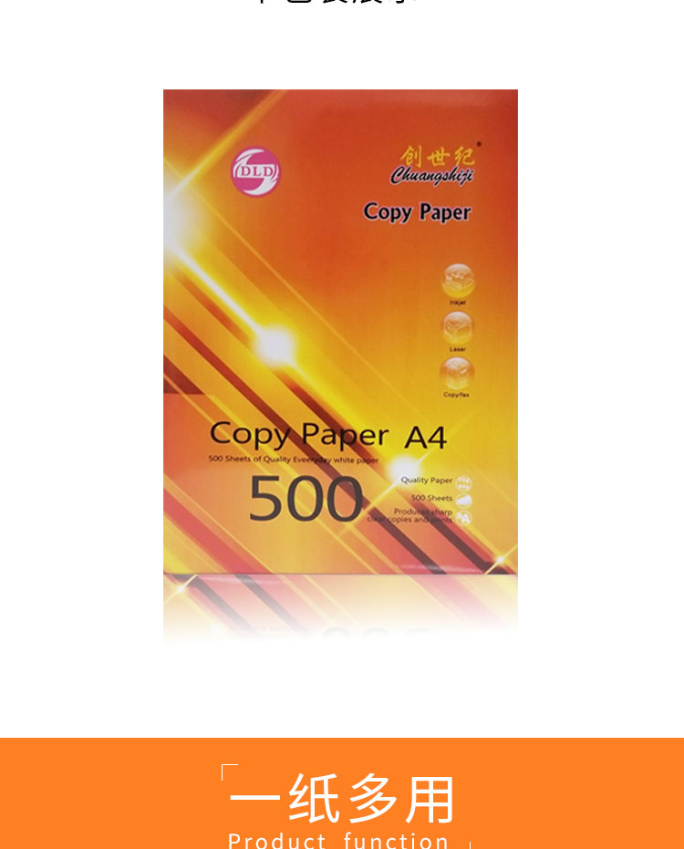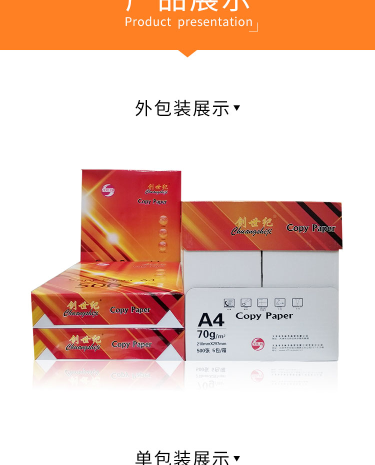 橙创世纪复印纸 210*297mm 70g A4 500张/包 5包/箱 2500张 单位:箱 白色