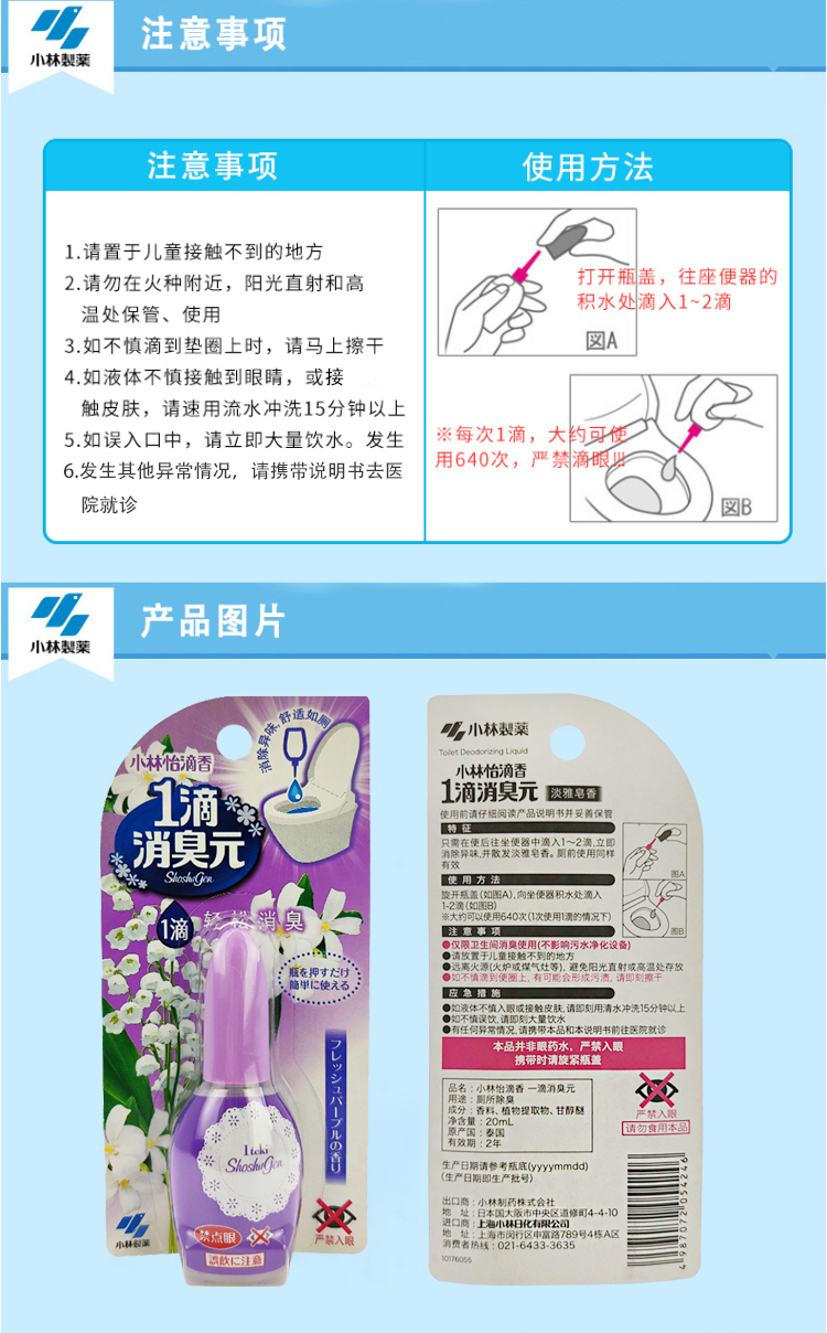 小林制药马桶厕所卫生间除臭剂去异味一滴消臭元淡雅皂香20ml (单位:瓶) 紫色