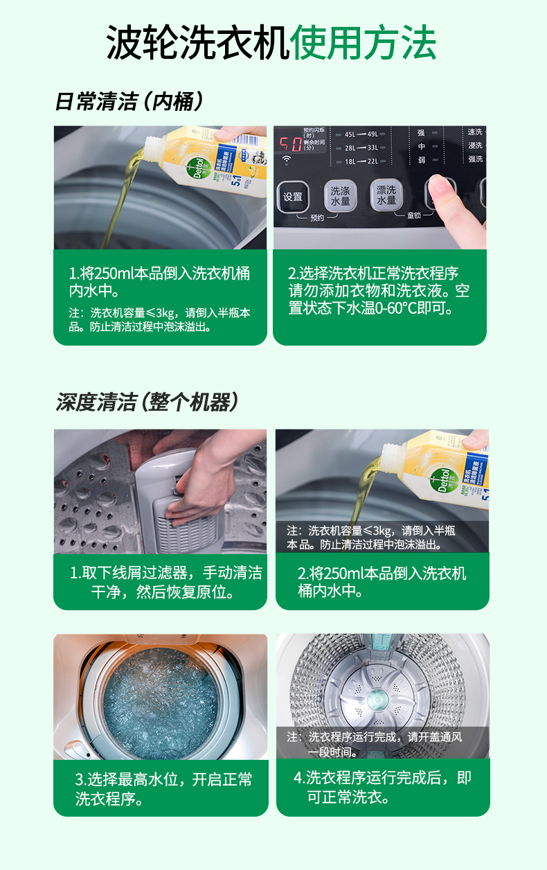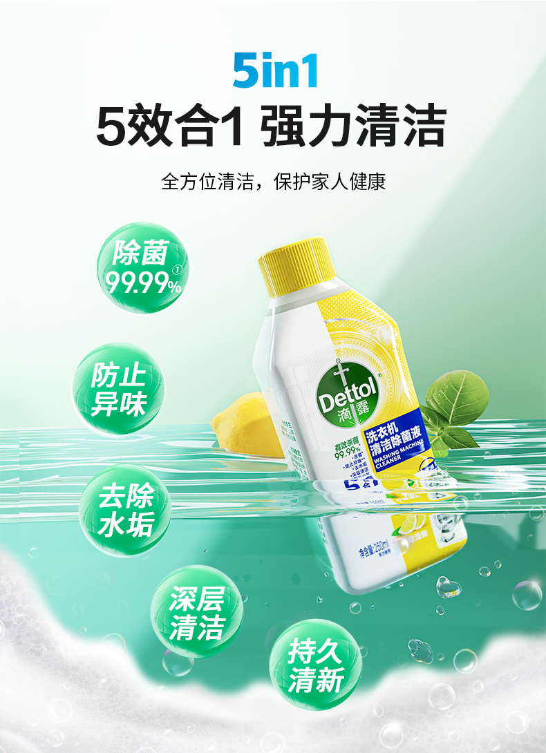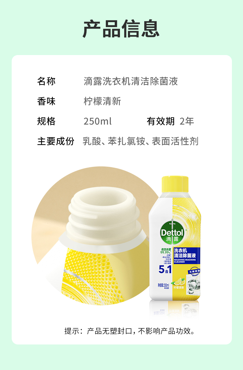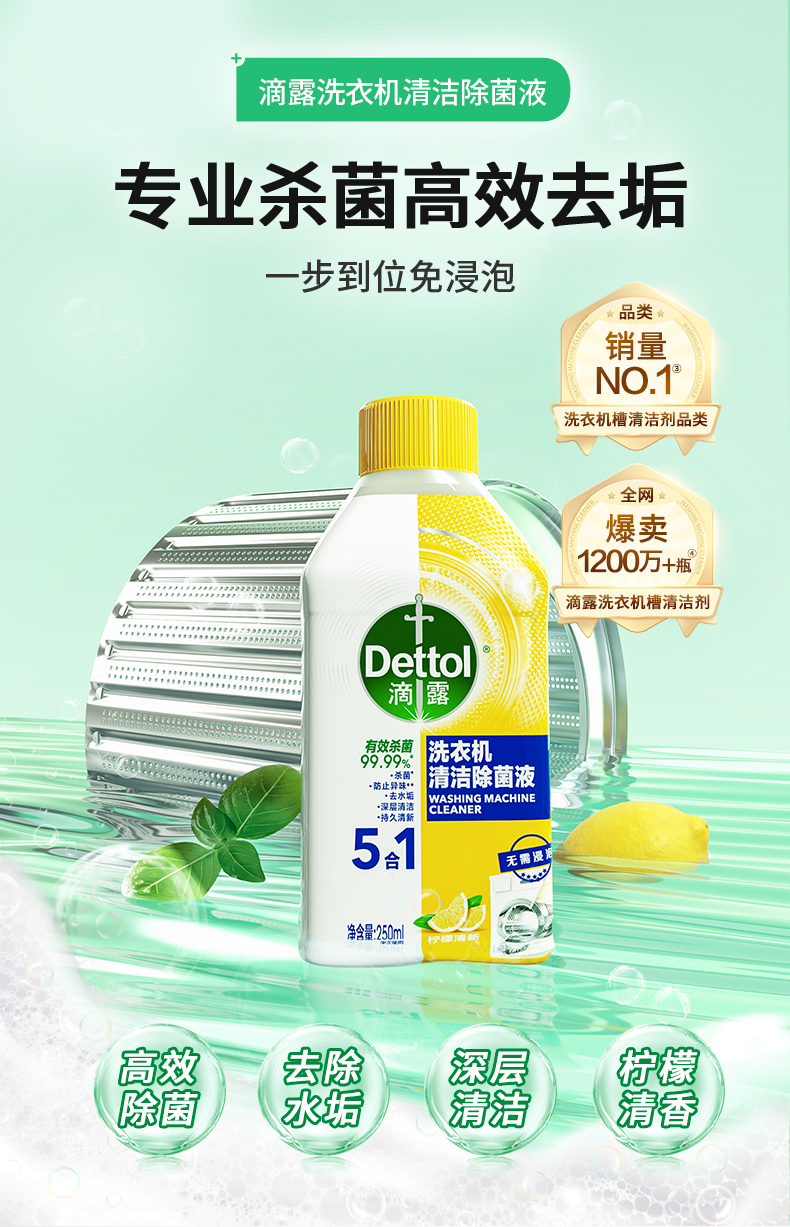 滴露洗衣机清洁除菌液柠檬250ml *2-瓶 无色