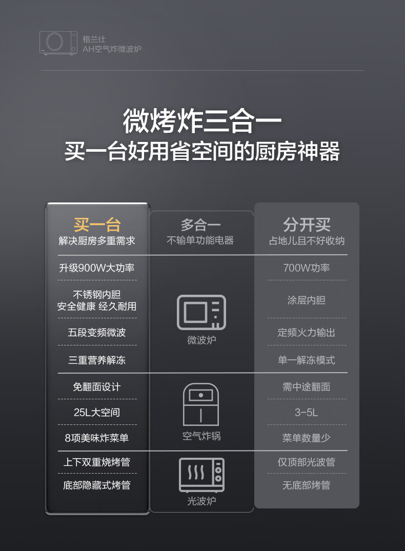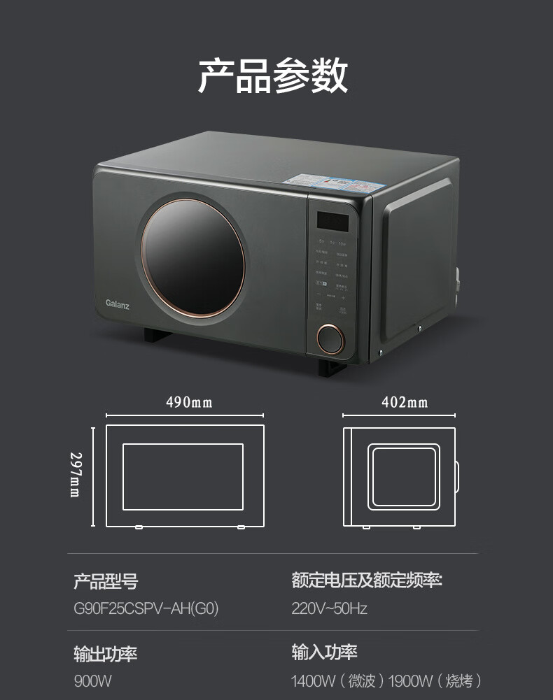 格兰仕(Galanz)微波炉25L家用G90F25CSPV-AH(G0)(台) 钛空灰