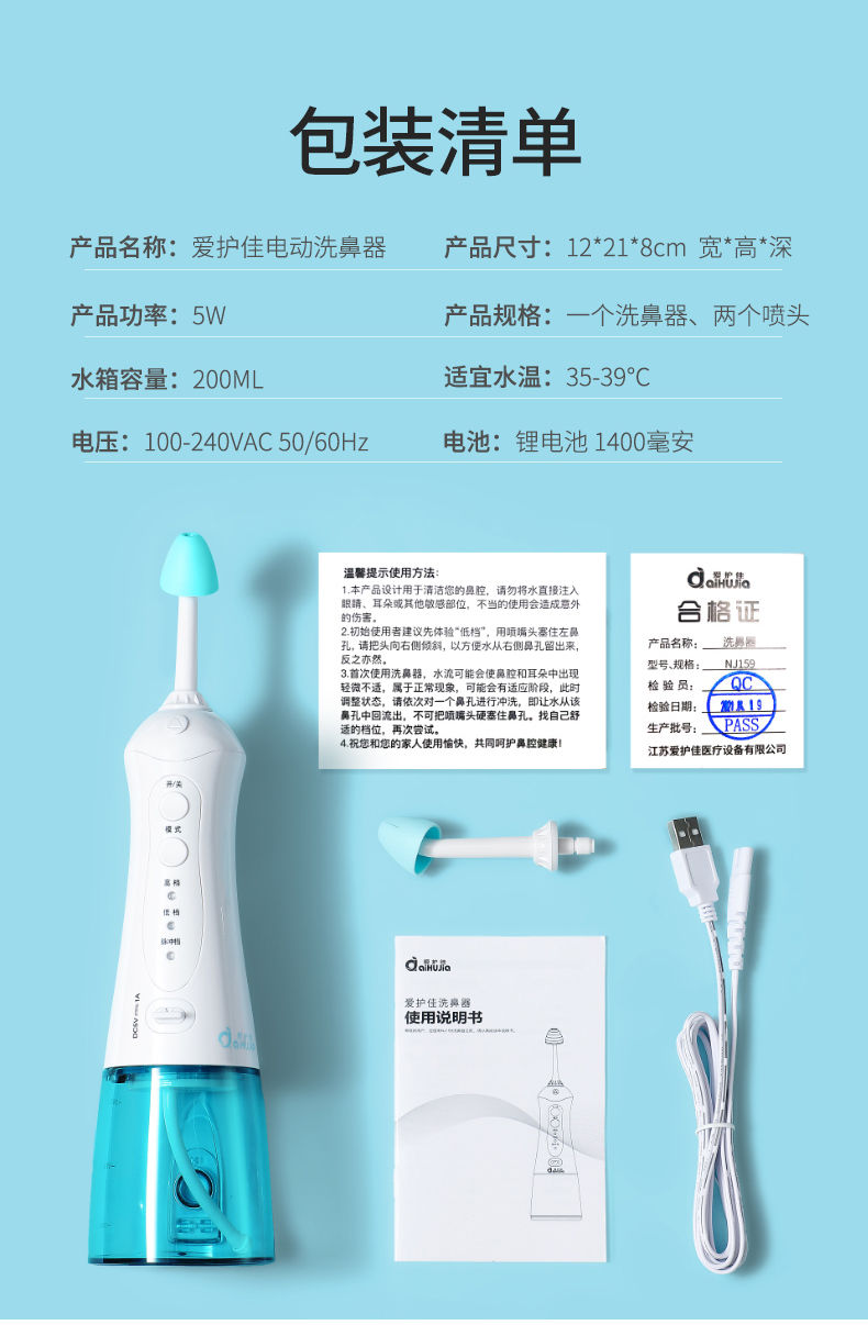 爱护佳 (aiHuJia) 电动洗鼻器 喷雾瓶电动洗鼻器 200ml 1个