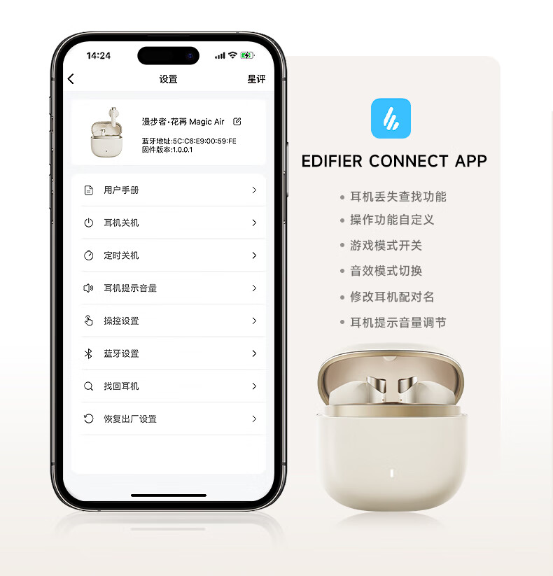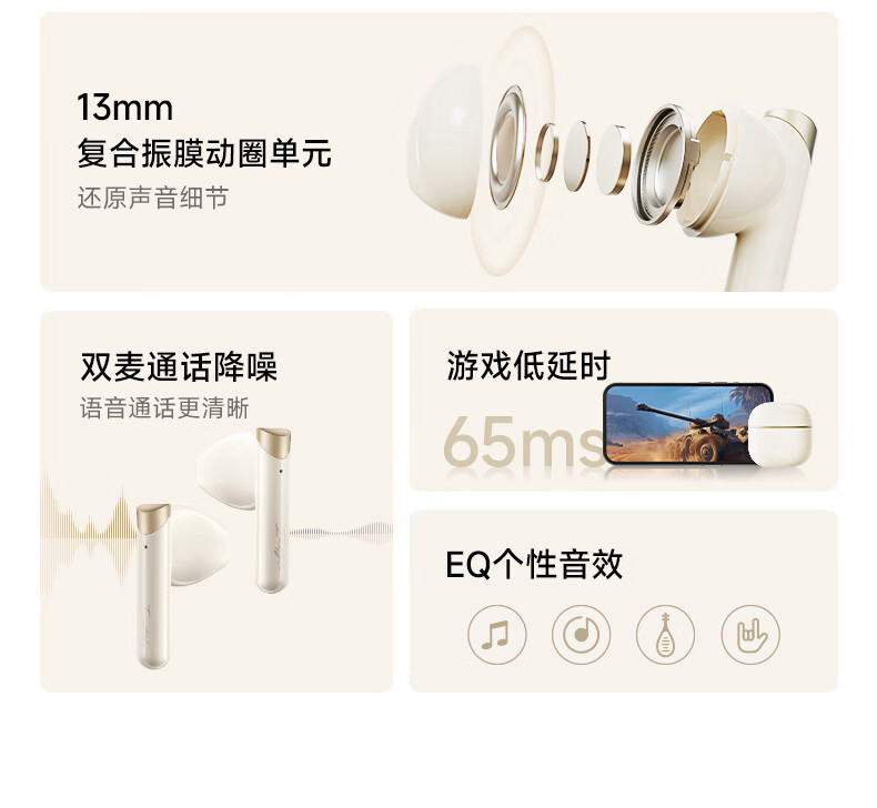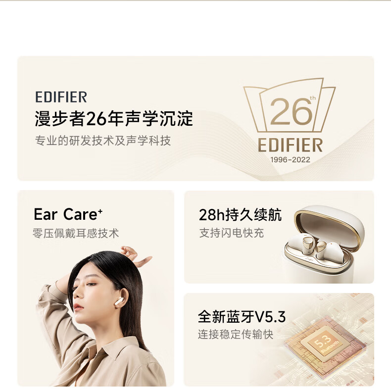 漫步者(EDIFIER)花再Magic Air真无线蓝牙半入耳式耳机单位(对) 云岩白