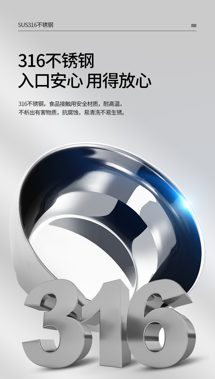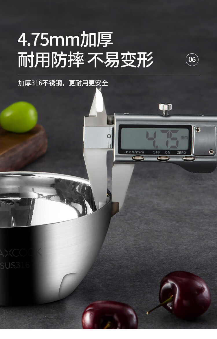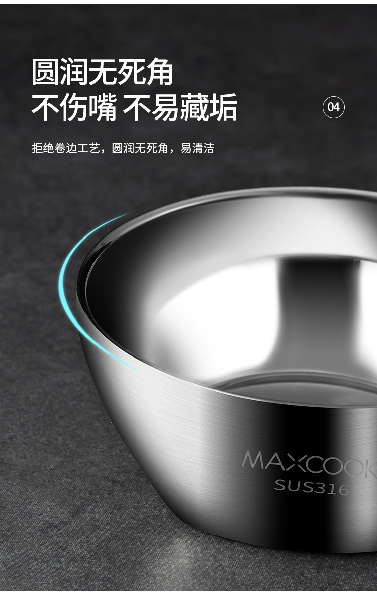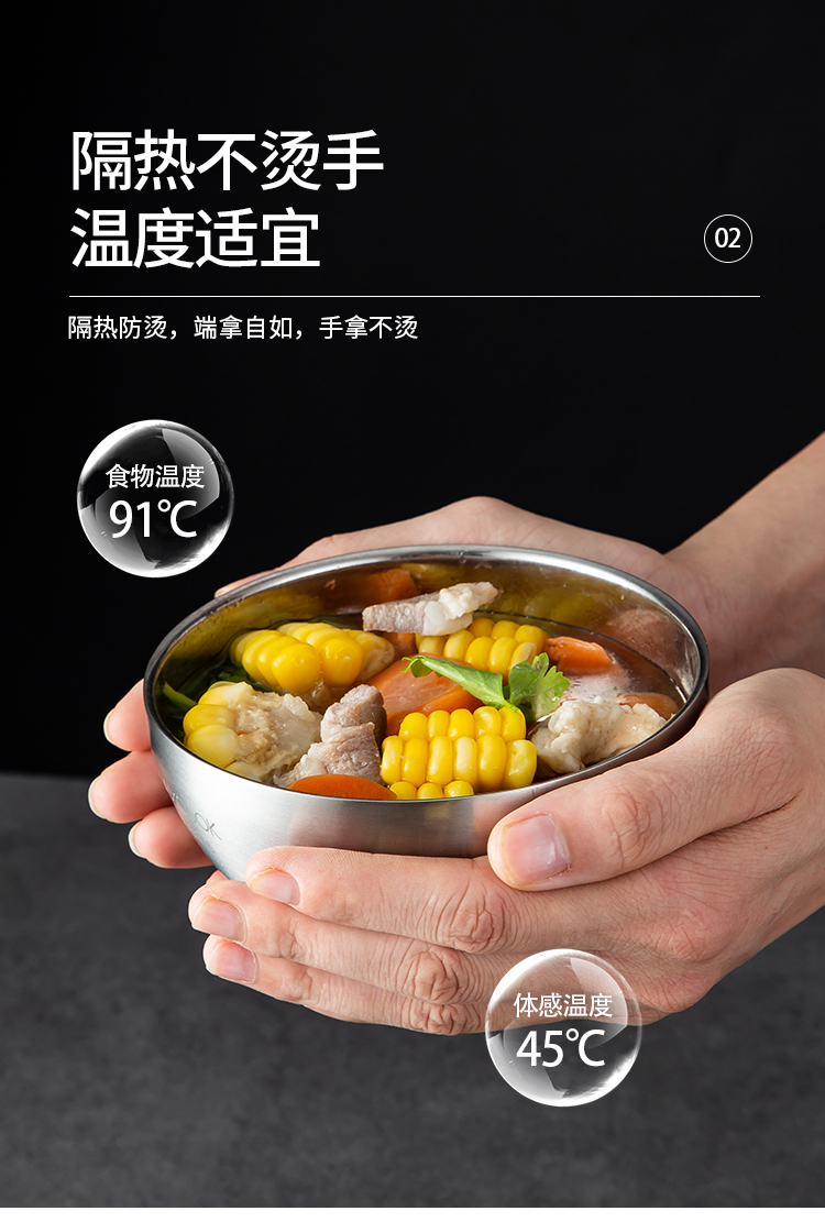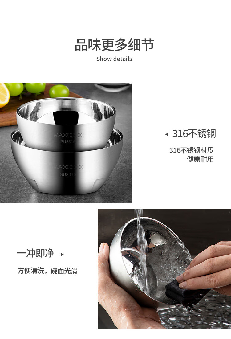 美厨316不锈钢双层隔热汤碗面碗15CM MCWA9600