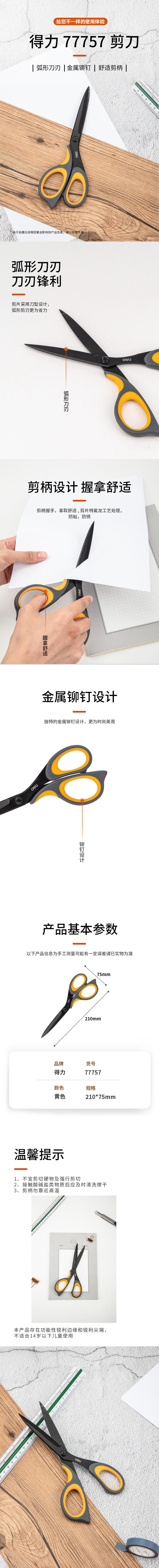 得力(deli)210mm人机造型黑刃防锈剪刀 办公家用生活手工剪纸刀办公用品 灰色77757/把 灰色