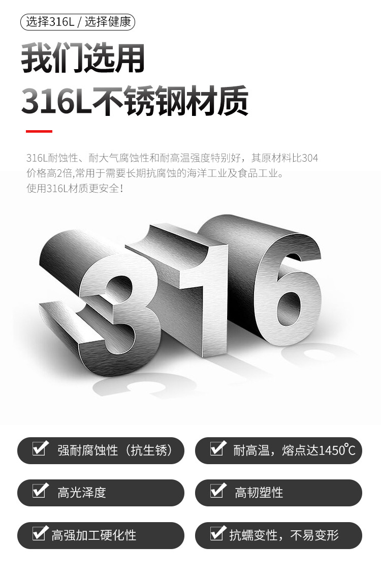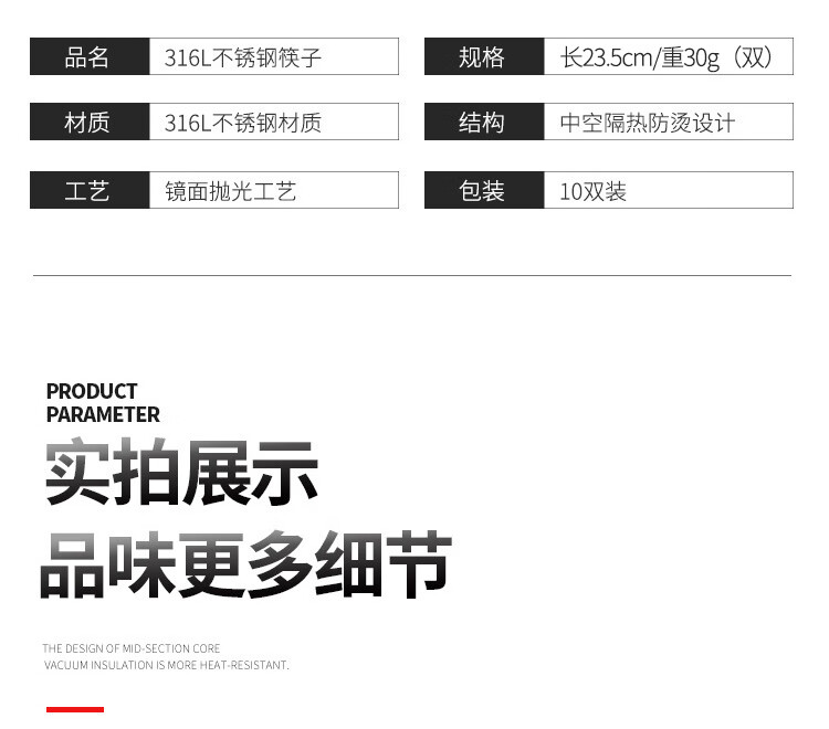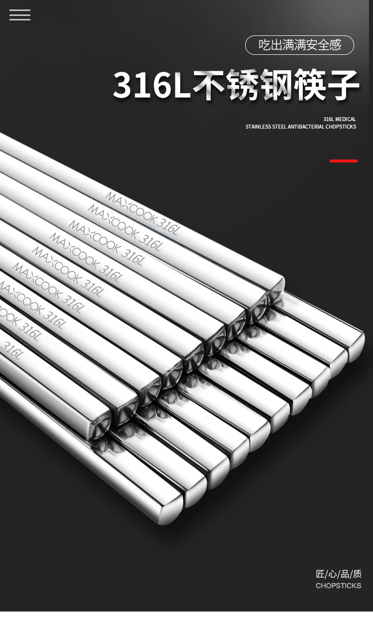 美厨316L不锈钢筷子十双装 MCPJ079