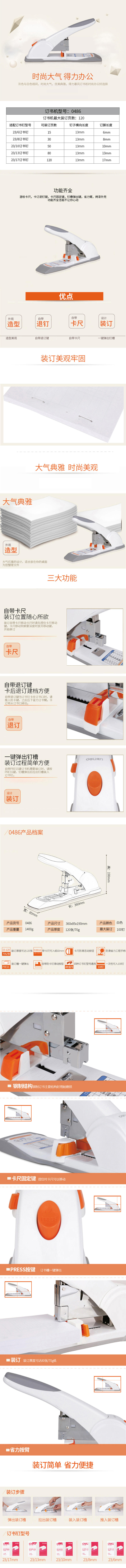 得力省力型重型大订书机/订书器 大号加厚重型订书机 带滑动标尺 白色0486(单位:台) 白色